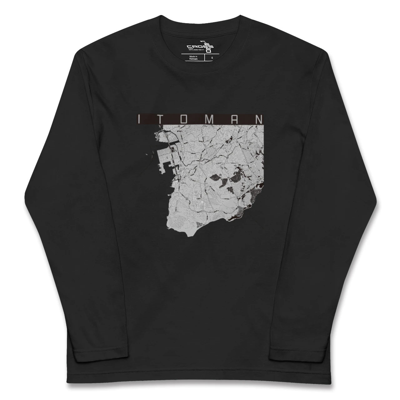 幅広いシーズンにフィットする長袖Tシャツにあなたの街「糸満」のモノトーンマップをプリントしました。