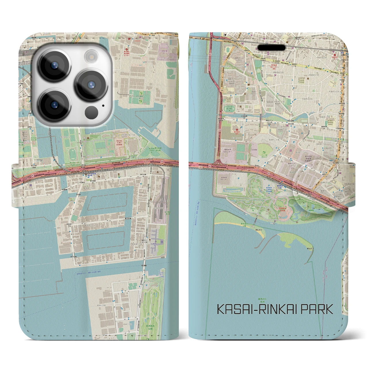 思い出の街、今を暮らす街、あなたが愛する「葛西臨海公園」の手帳タイプ地図柄iPhoneケースです。両面にまたがる大きなプリントで、離れていても「葛西臨海公園」をいつも身近に感じさせてくれます。