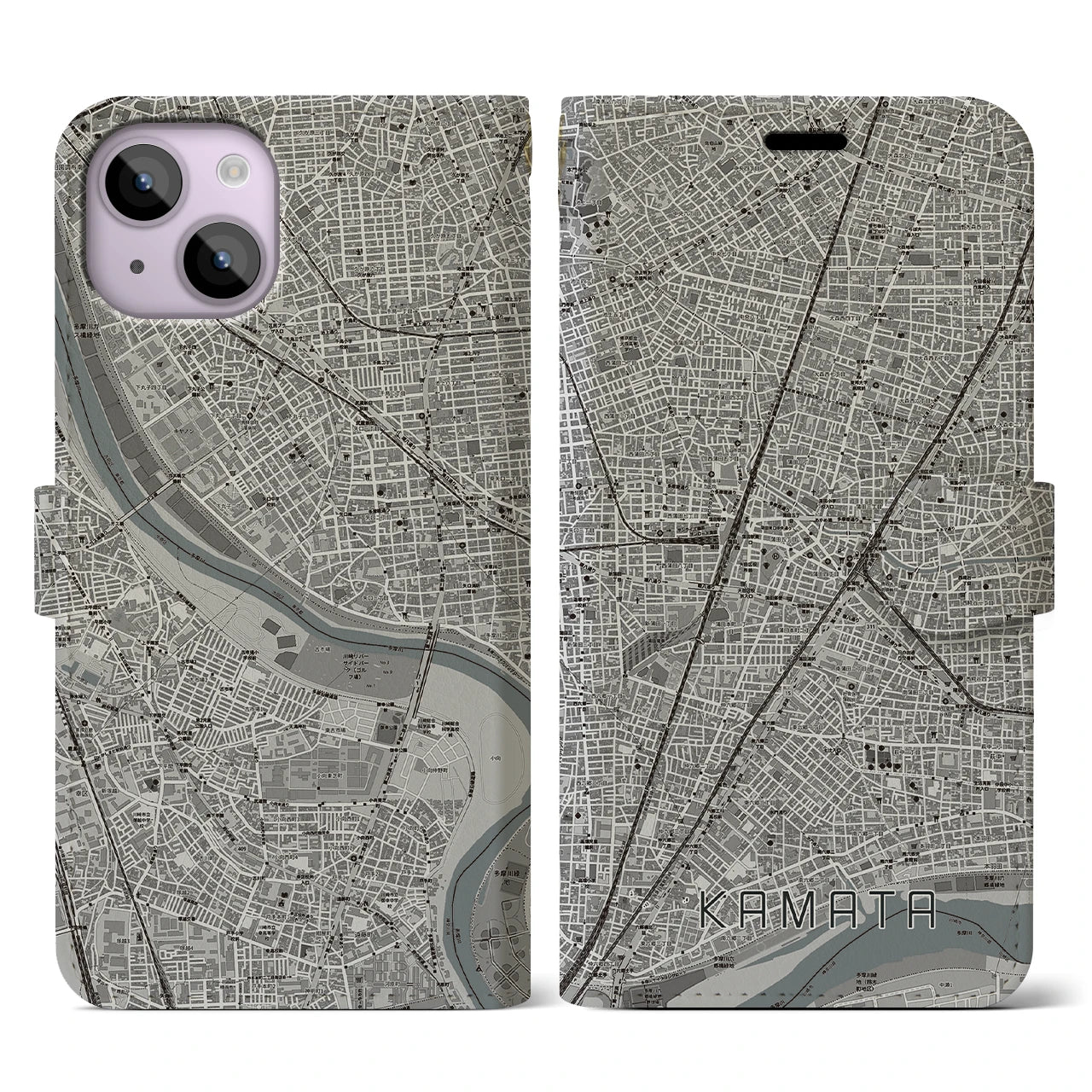 【蒲田(東京都)】地図柄iPhoneケース(手帳タイプ)モノトーン・iPhone 14 用