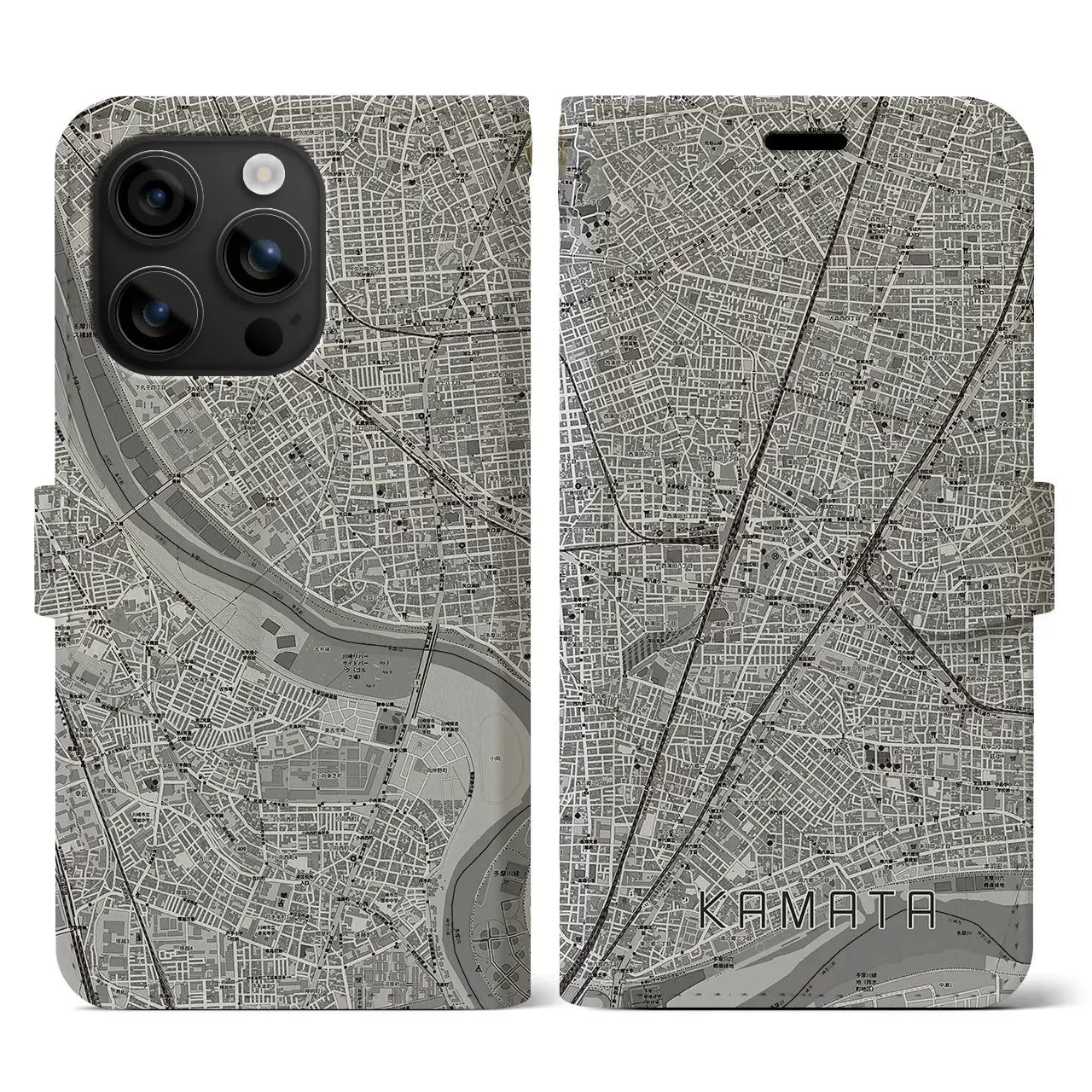 【蒲田(東京都)】地図柄iPhoneケース(手帳タイプ)モノトーン・iPhone 15 Pro 用