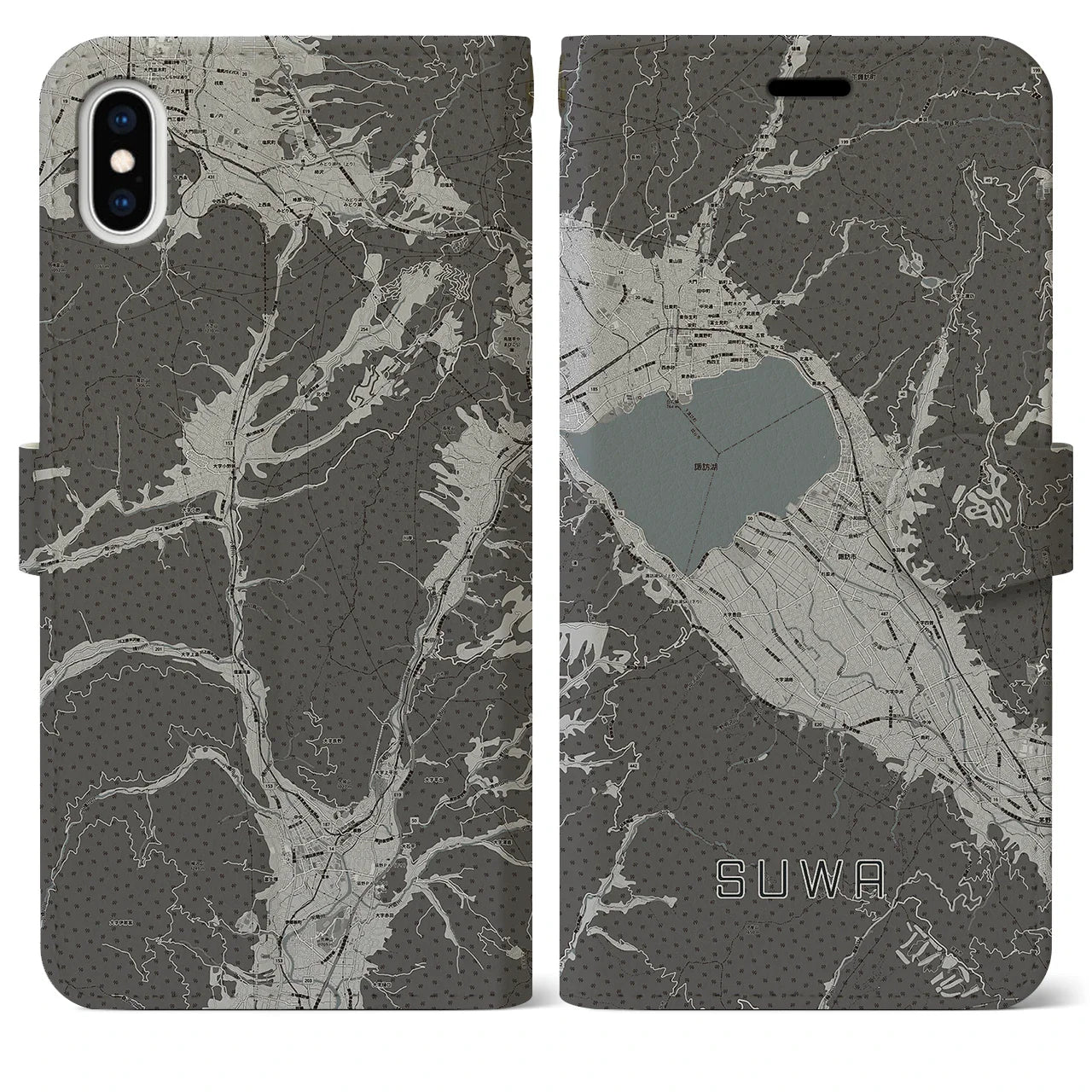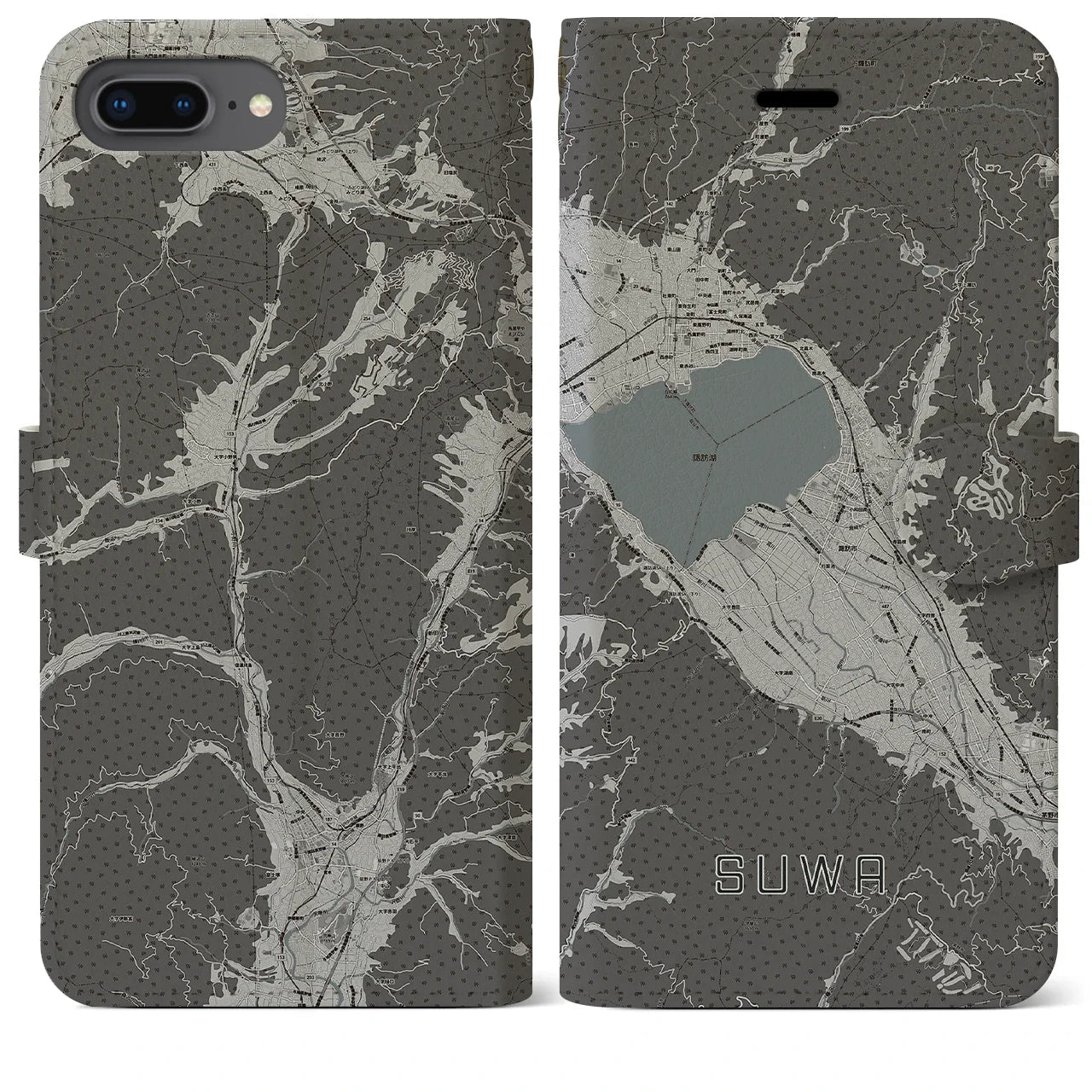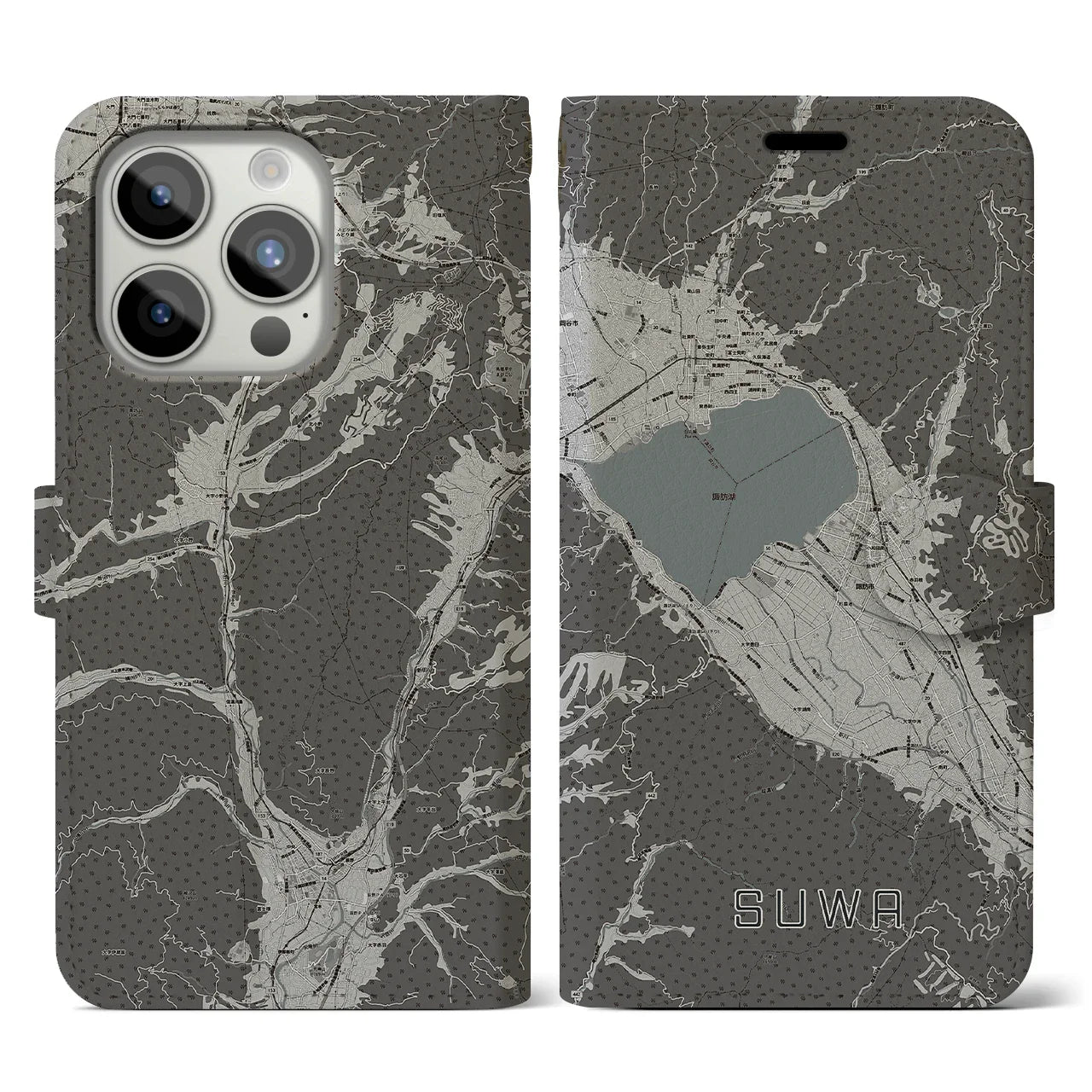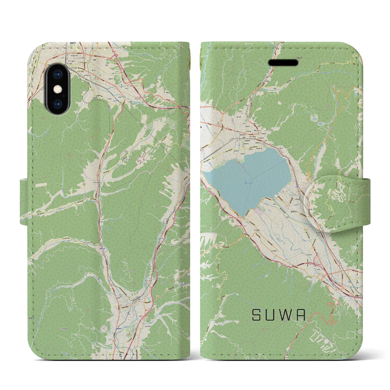 思い出の街、今を暮らす街、あなたが愛する「諏訪」の手帳タイプ地図柄iPhoneケースです。両面にまたがる大きなプリントで、離れていても「諏訪」をいつも身近に感じさせてくれます。