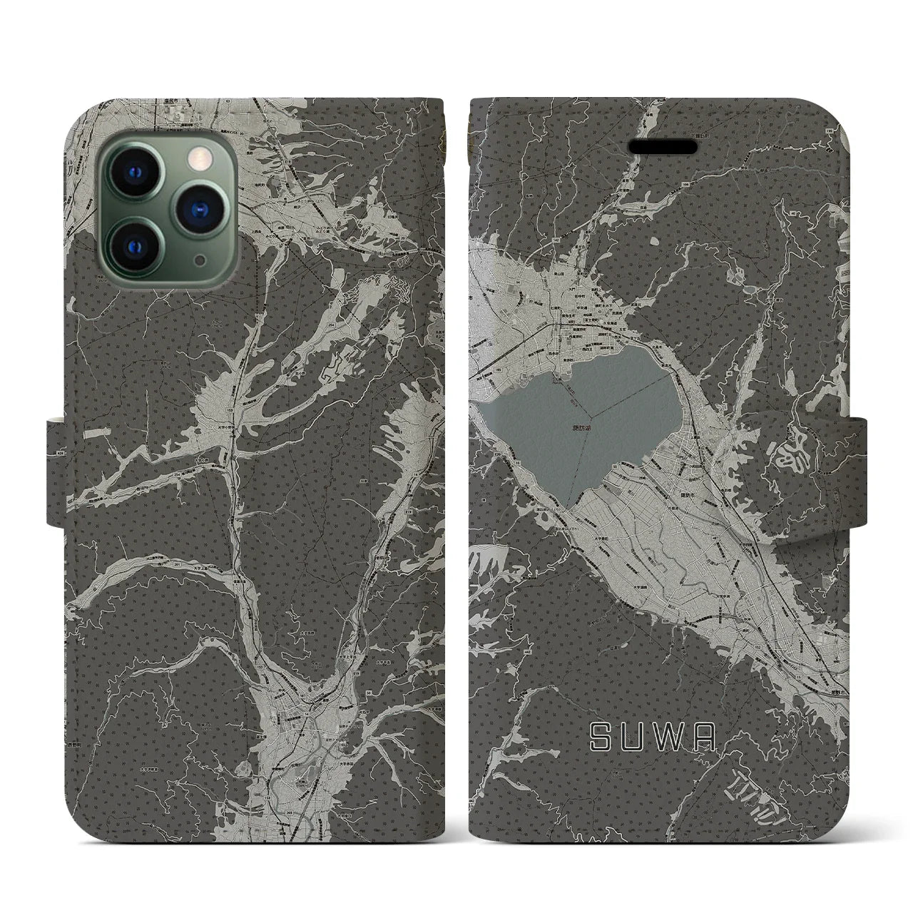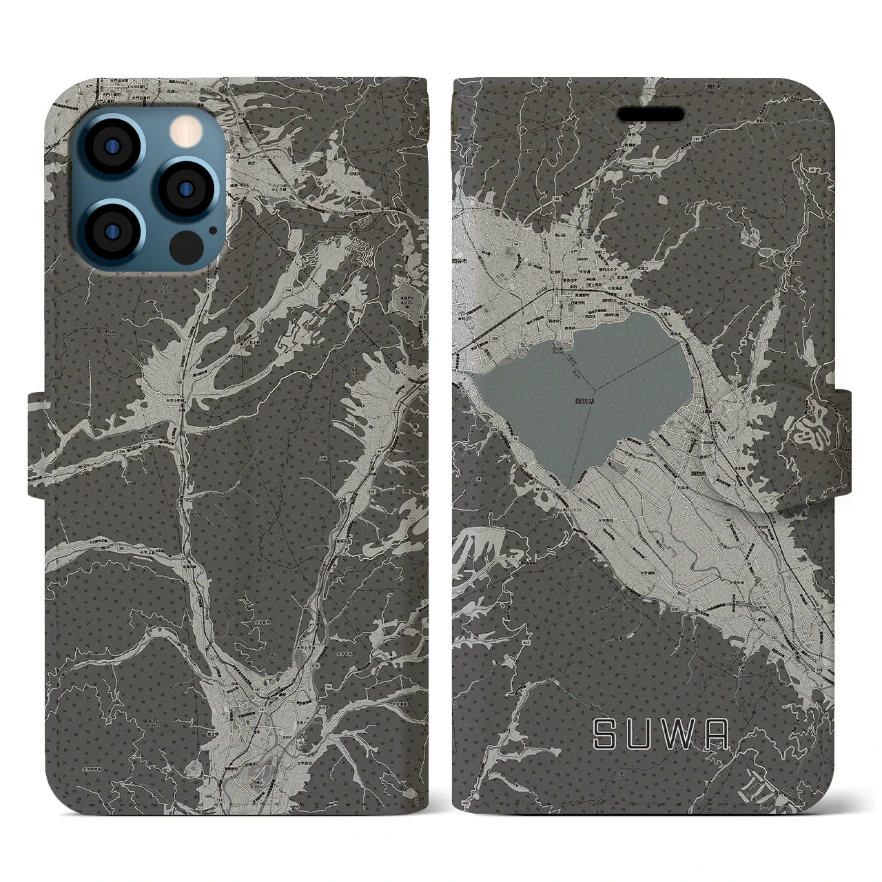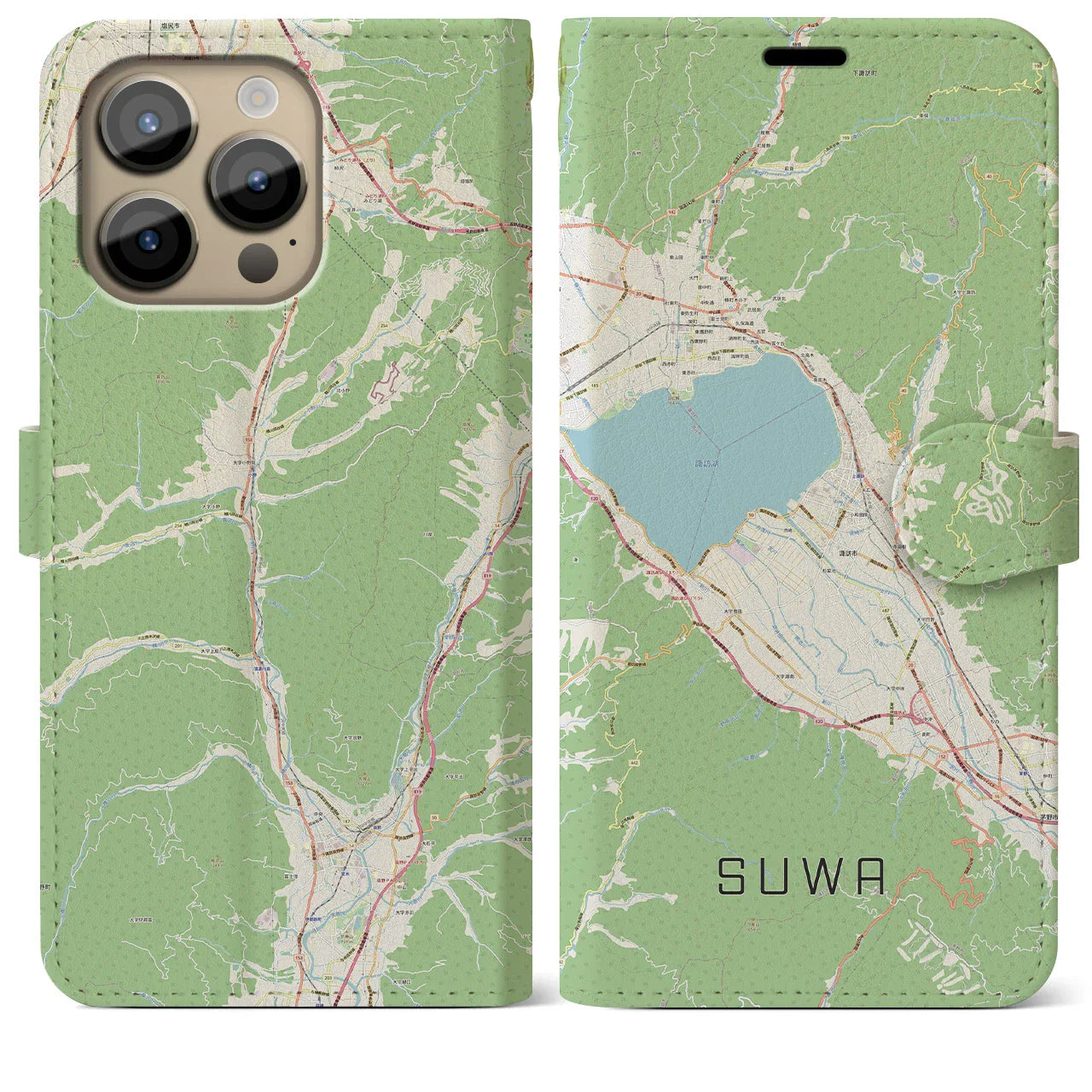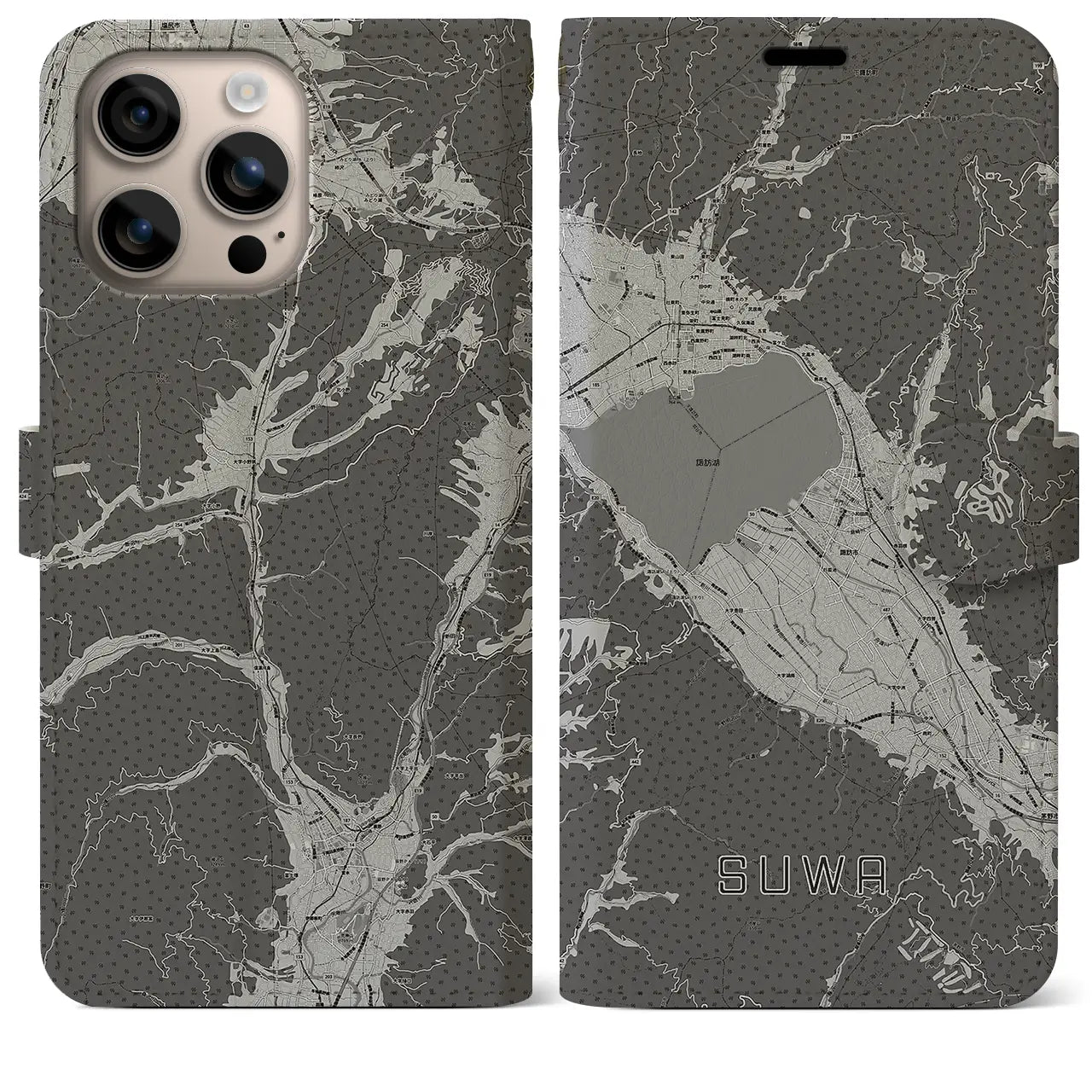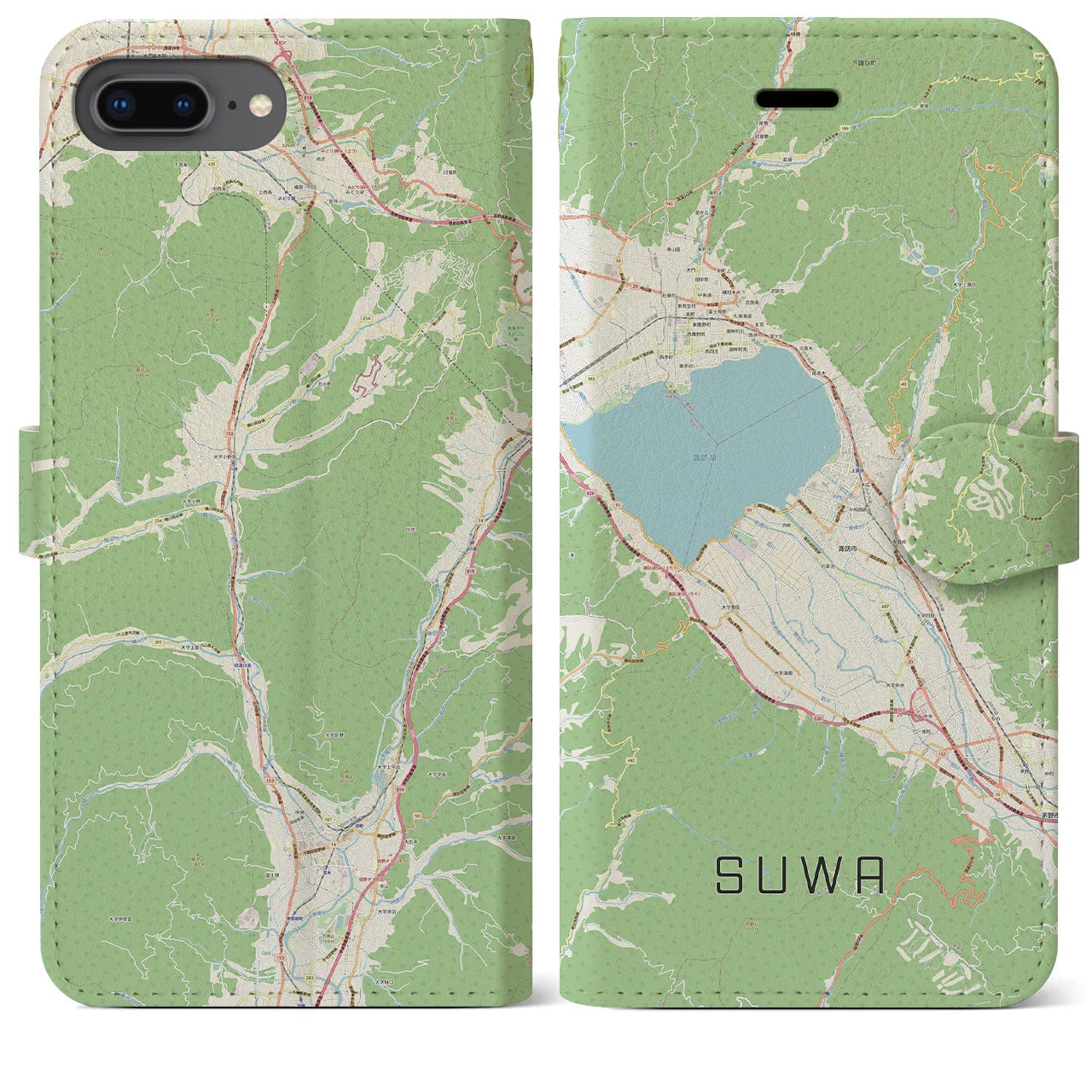 思い出の街、今を暮らす街、あなたが愛する「諏訪」の手帳タイプ地図柄iPhoneケースです。両面にまたがる大きなプリントで、離れていても「諏訪」をいつも身近に感じさせてくれます。