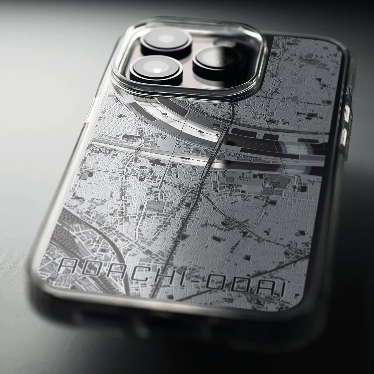 【足立小台(東京都)】地図柄iPhoneケース(MagSafeタイプ)モノトーン・iPhone 16 Pro 用