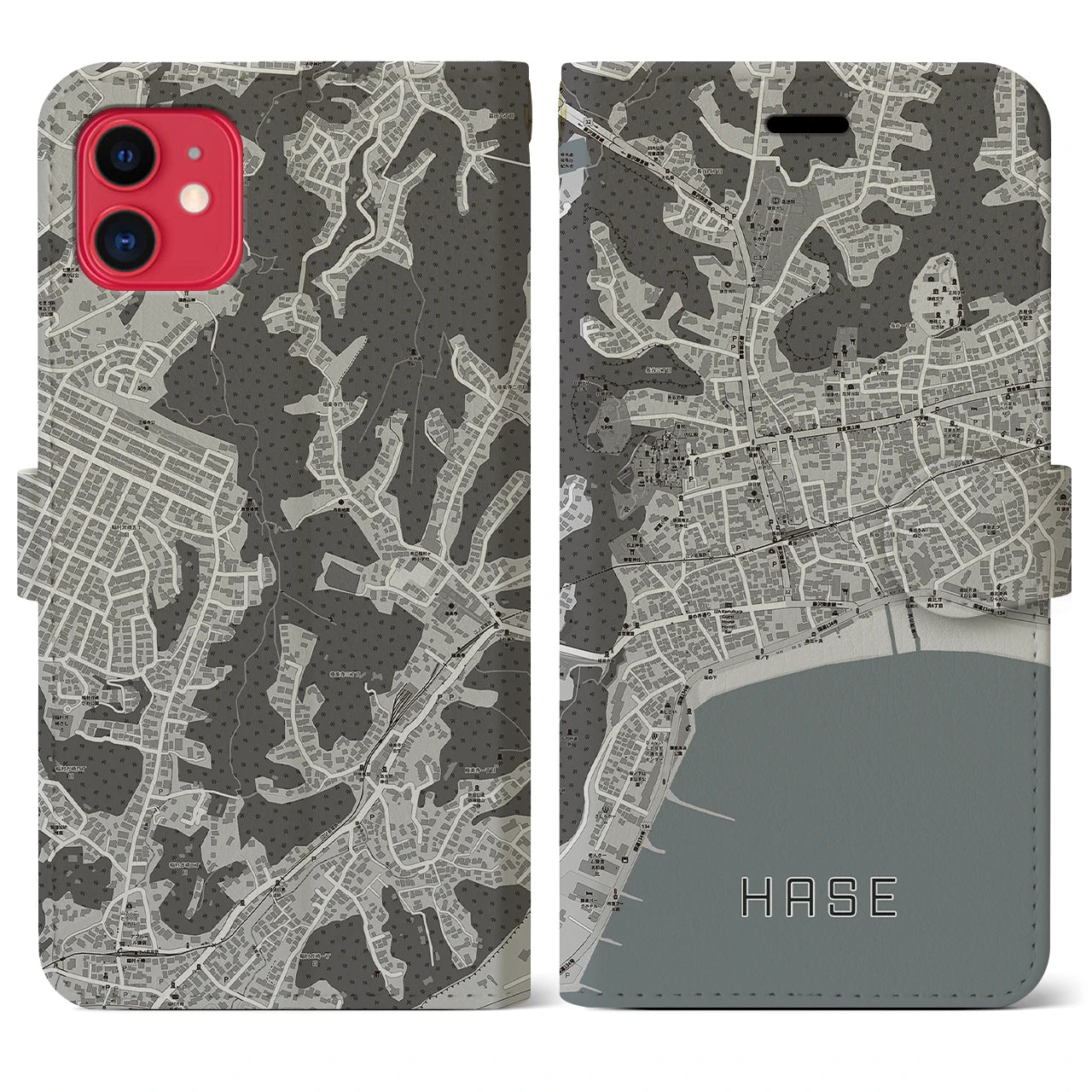 【長谷(神奈川県)】地図柄iPhoneケース(手帳タイプ)モノトーン・iPhone 11 用