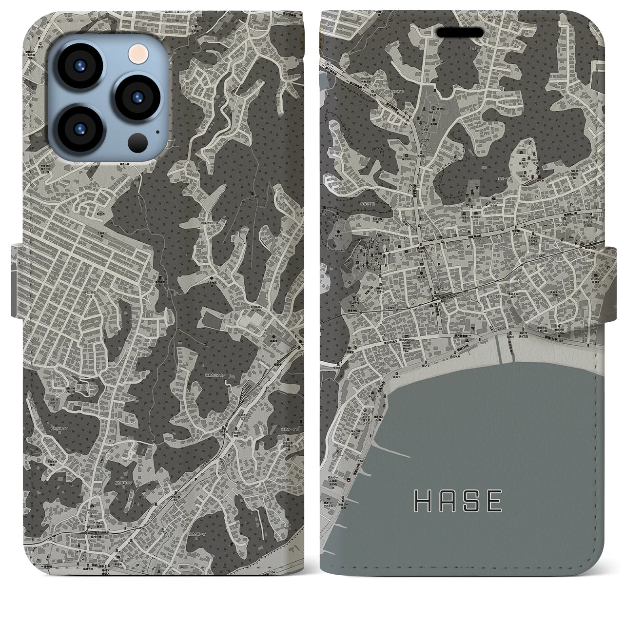【長谷(神奈川県)】地図柄iPhoneケース(手帳タイプ)モノトーン・iPhone 13 Pro Max 用