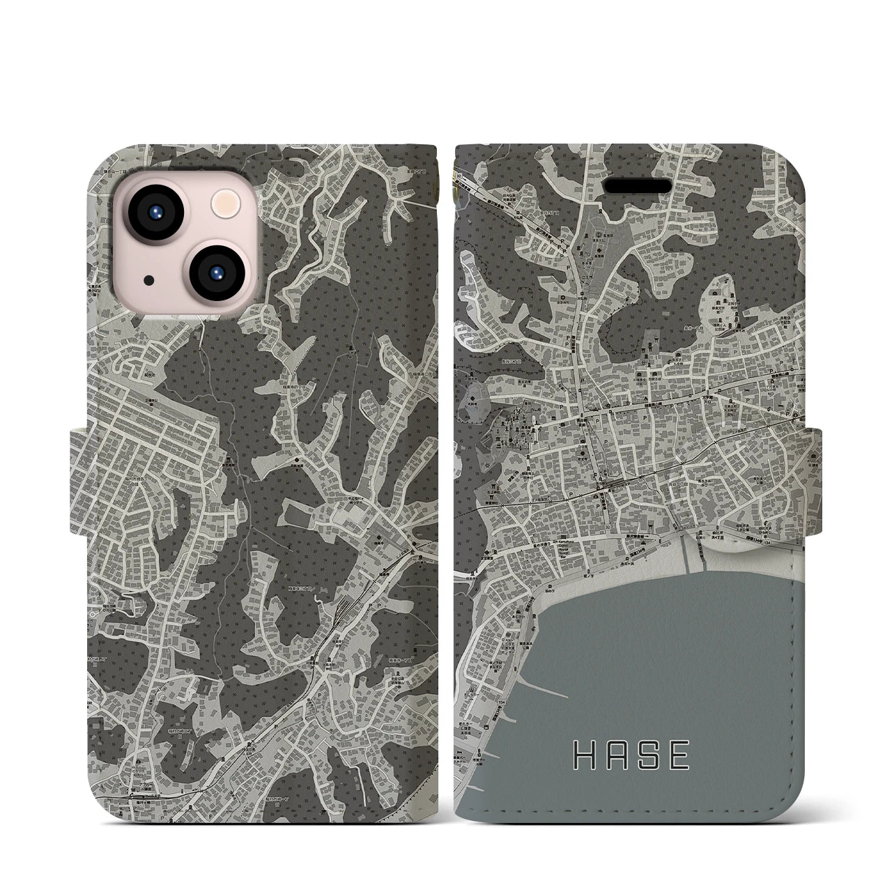【長谷(神奈川県)】地図柄iPhoneケース(手帳タイプ)モノトーン・iPhone 13 mini 用