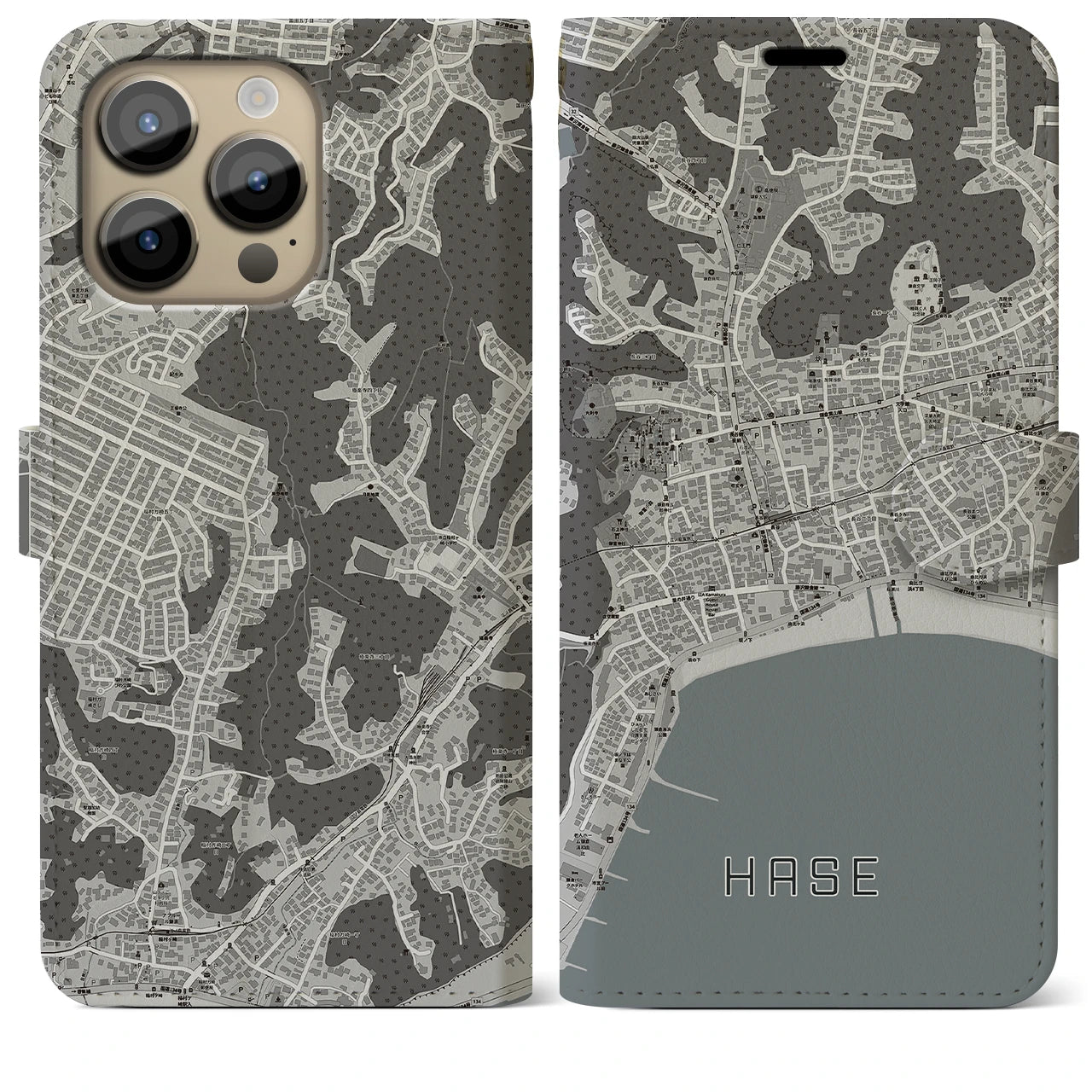 【長谷(神奈川県)】地図柄iPhoneケース(手帳タイプ)モノトーン・iPhone 14 Pro Max 用