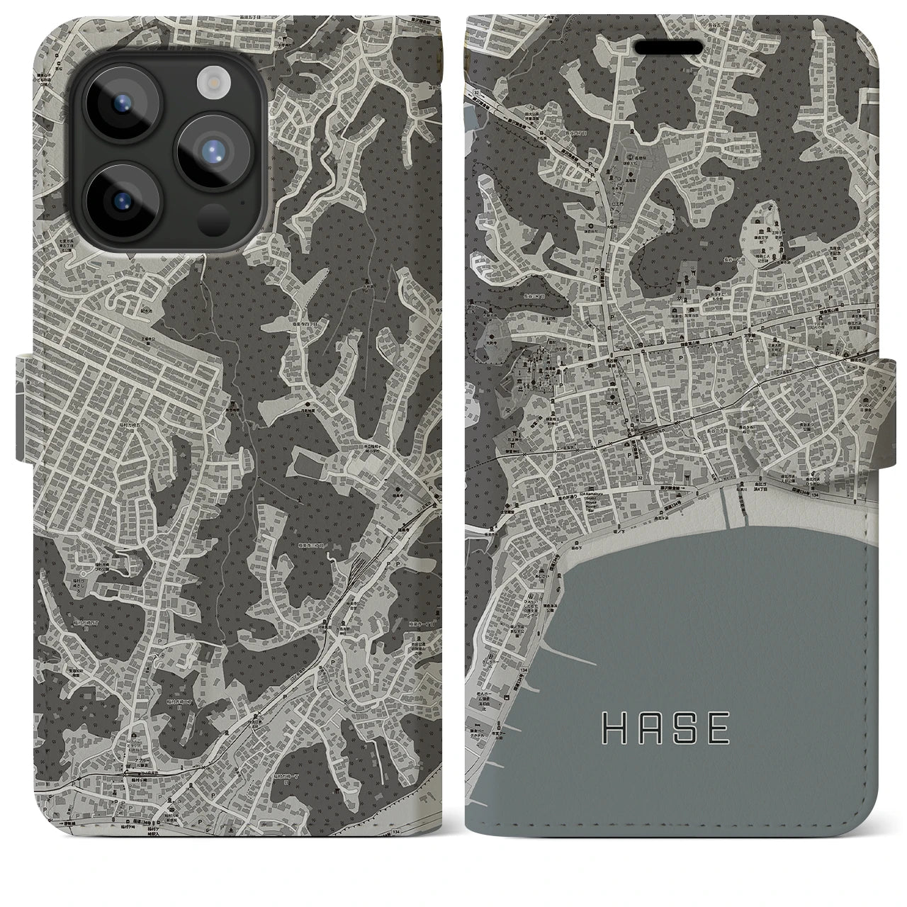 【長谷(神奈川県)】地図柄iPhoneケース(手帳タイプ)モノトーン・iPhone 15 Pro Max 用