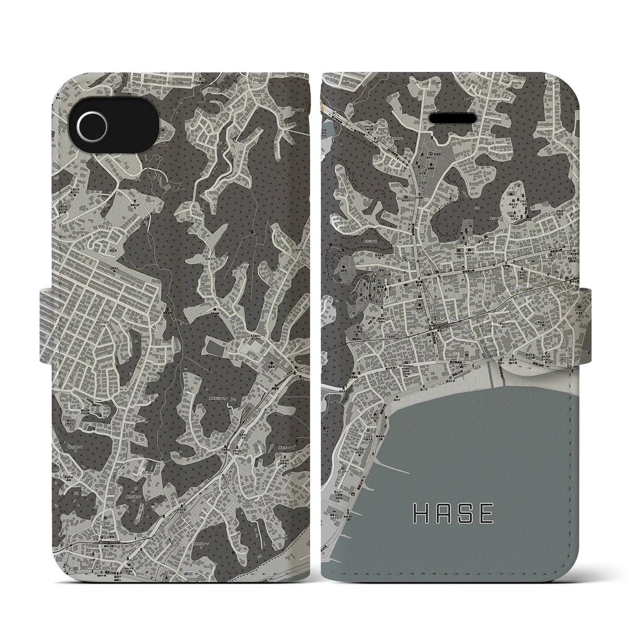【長谷(神奈川県)】地図柄iPhoneケース(手帳タイプ)モノトーン・iPhone SE(第3 / 第2世代) / 8 / 7 / 6s / 6 用