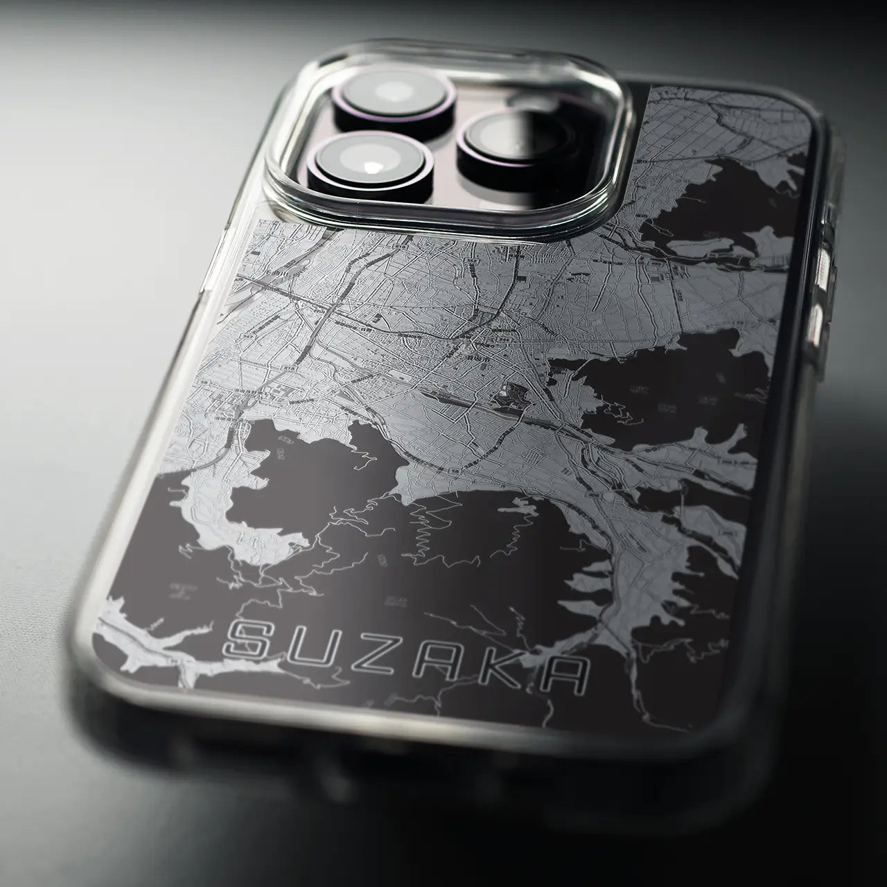 【須坂(長野県)】地図柄iPhoneケース(MagSafeタイプ)モノトーン・iPhone 16 Pro 用