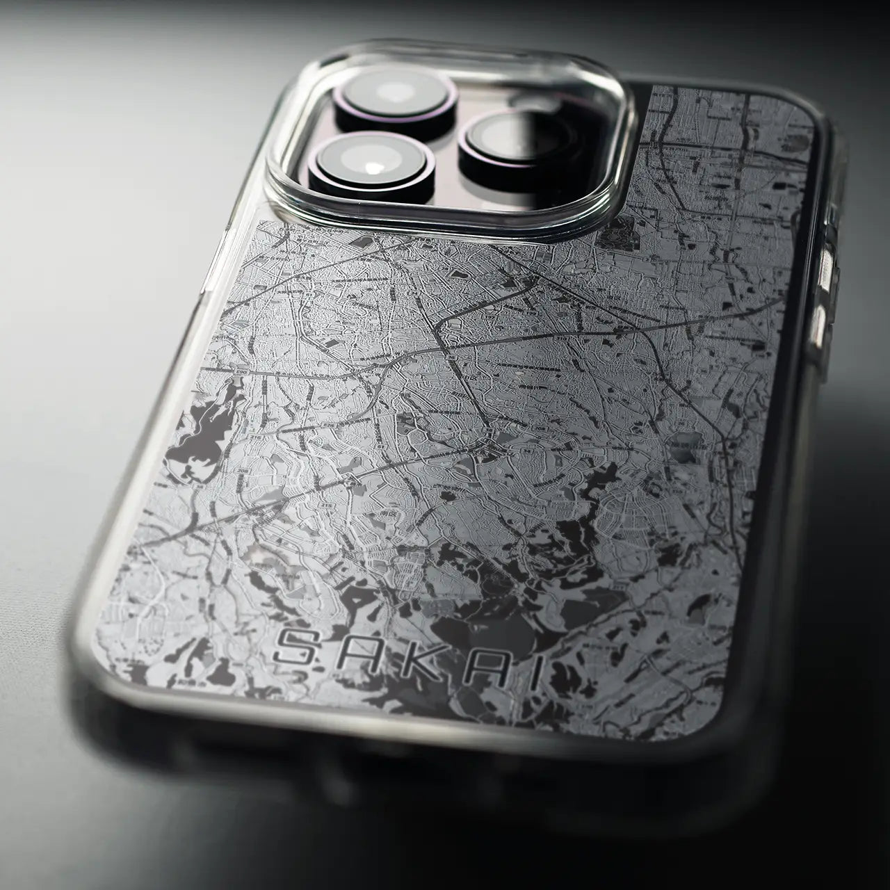 【堺2(大阪府)】地図柄iPhoneケース(MagSafeタイプ)モノトーン・iPhone 16 Pro 用
