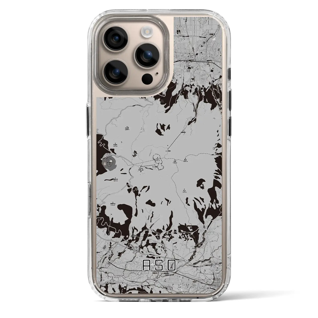 【阿蘇(熊本県)】地図柄iPhoneケース(MagSafeタイプ)モノトーン・iPhone 16 Pro 用