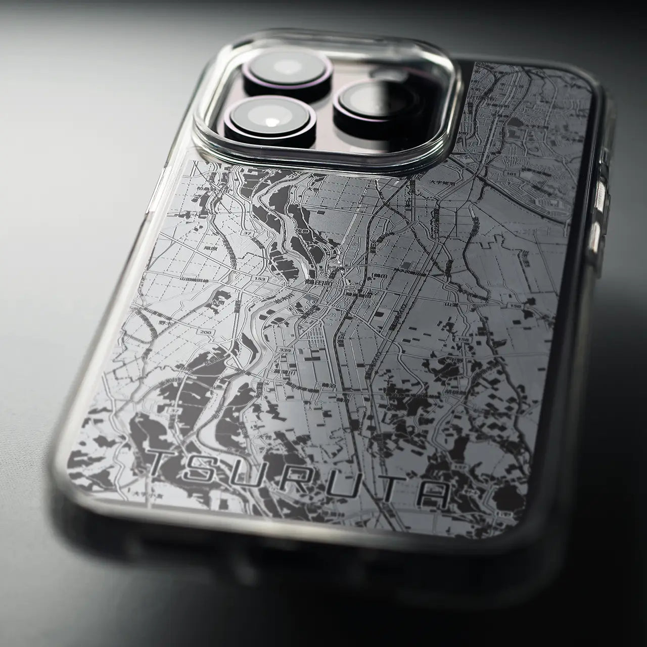 【鶴田(青森県)】地図柄iPhoneケース(MagSafeタイプ)モノトーン・iPhone 16 Pro 用