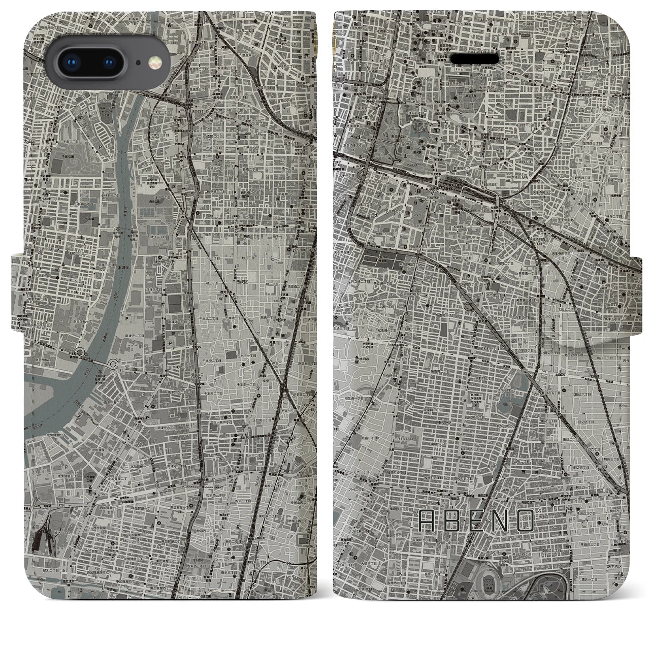 【阿倍野(大阪府)】地図柄iPhoneケース(手帳タイプ)