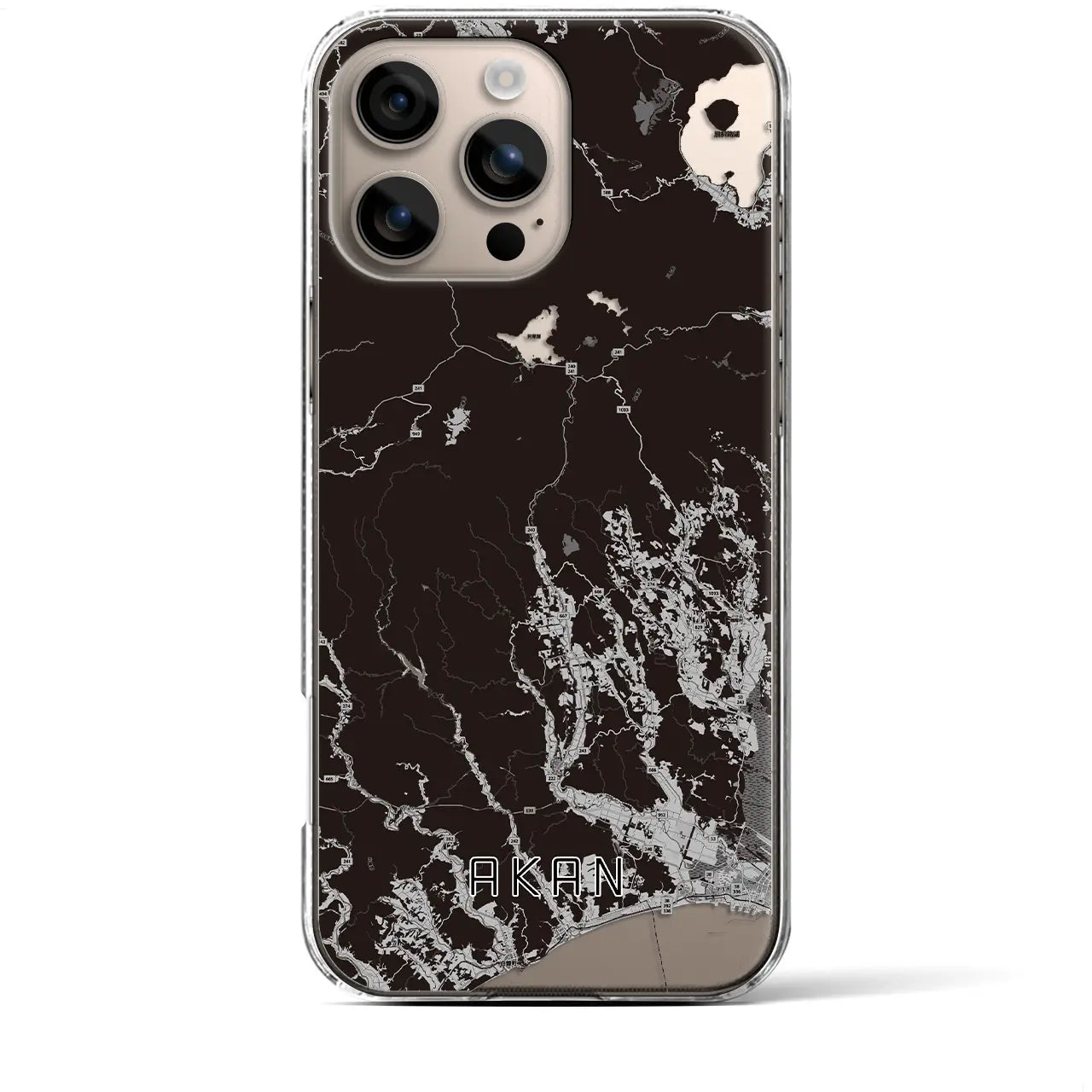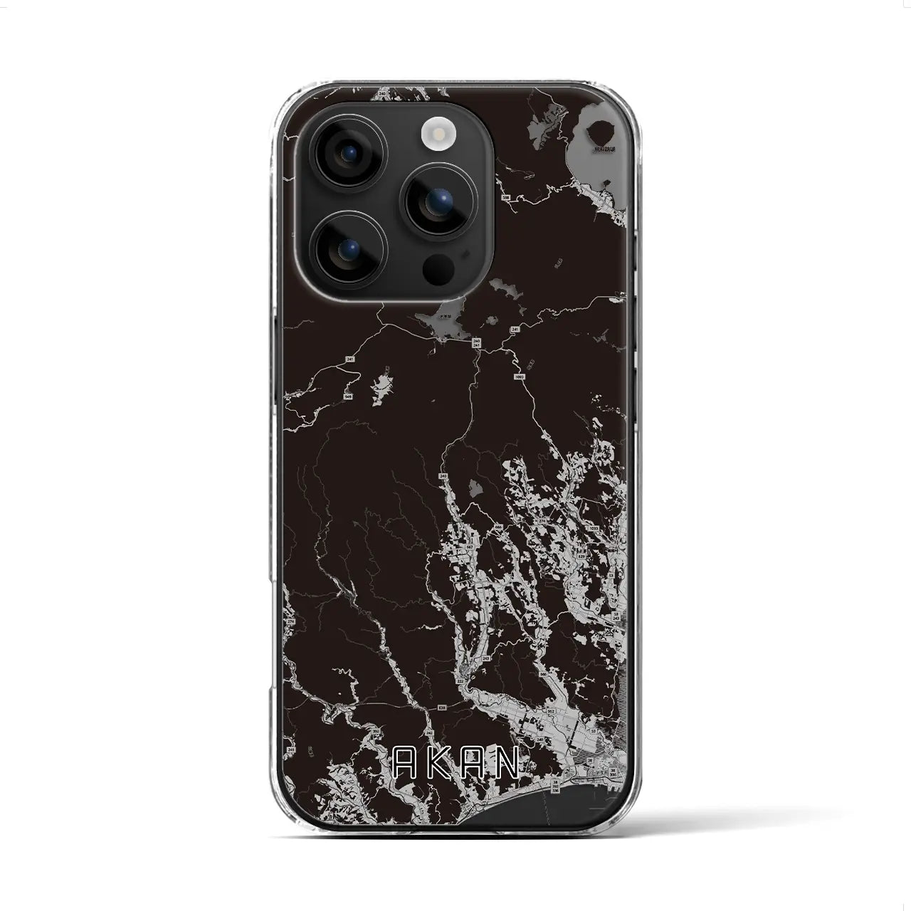 【阿寒(北海道)】地図柄iPhoneケース(クリアタイプ)モノトーン・iPhone 17 Pro Max 用