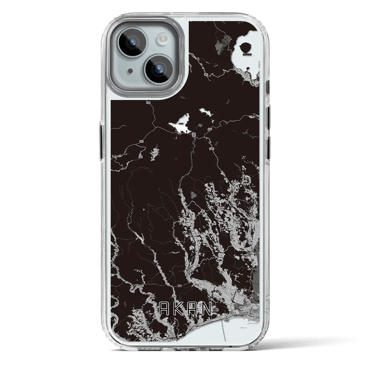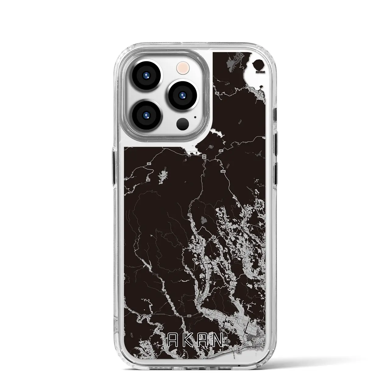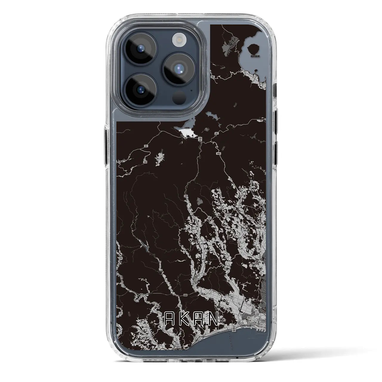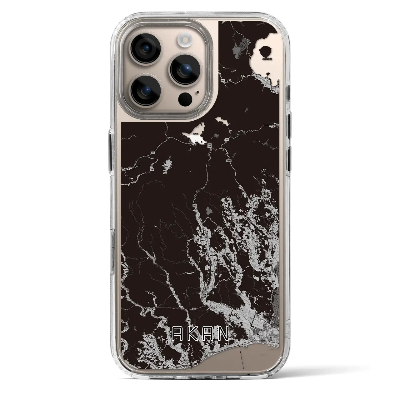 【阿寒(北海道)】地図柄iPhoneケース(MagSafeタイプ)モノトーン・iPhone 16 Pro 用