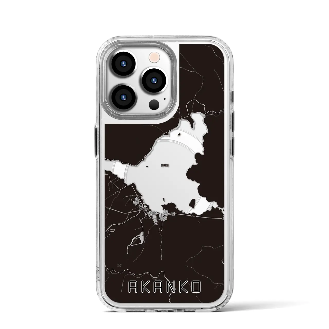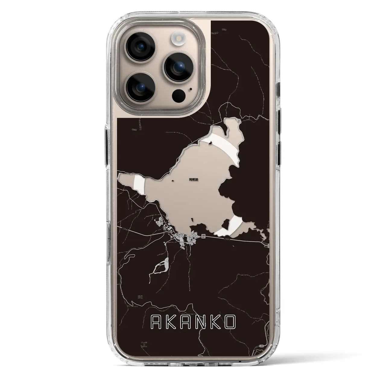 【阿寒湖(北海道)】地図柄iPhoneケース(MagSafeタイプ)モノトーン・iPhone 16 Pro 用