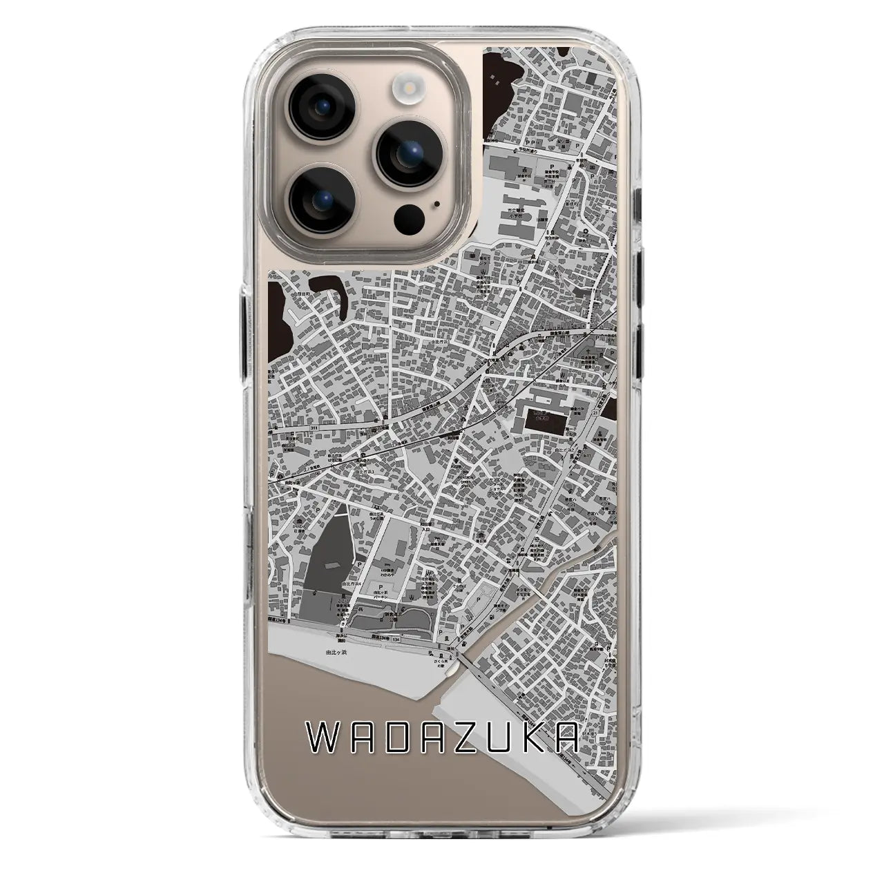 【和田塚(神奈川県)】地図柄iPhoneケース(MagSafeタイプ)モノトーン・iPhone 16 Pro 用