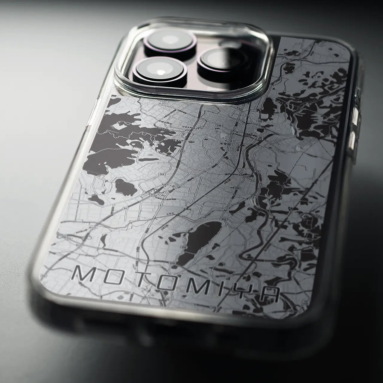 【本宮(福島県)】地図柄iPhoneケース(MagSafeタイプ)モノトーン・iPhone 16 Pro 用