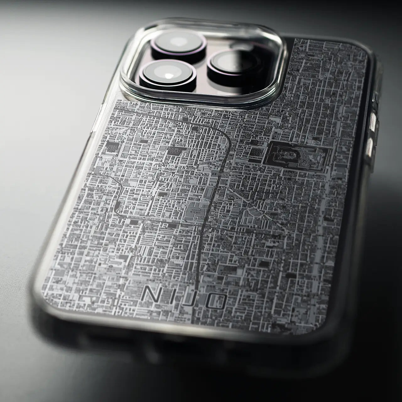 【二条(京都府)】地図柄iPhoneケース(MagSafeタイプ)モノトーン・iPhone 16 Pro 用