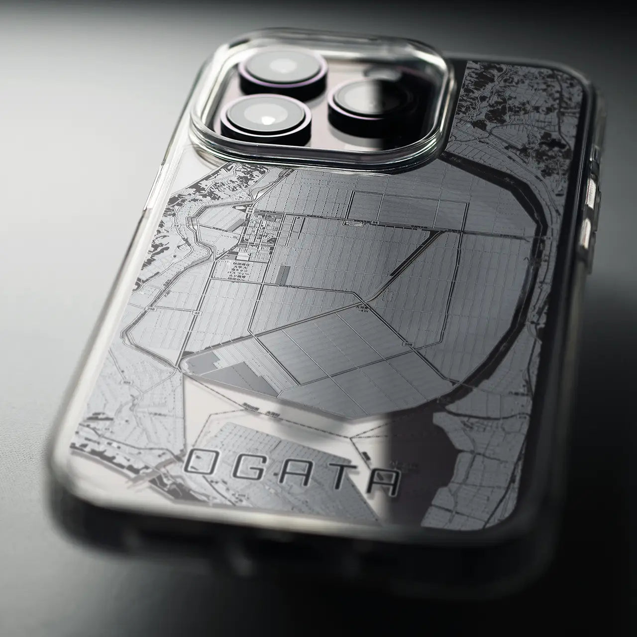 【大潟(秋田県)】地図柄iPhoneケース(MagSafeタイプ)モノトーン・iPhone 16 Pro 用