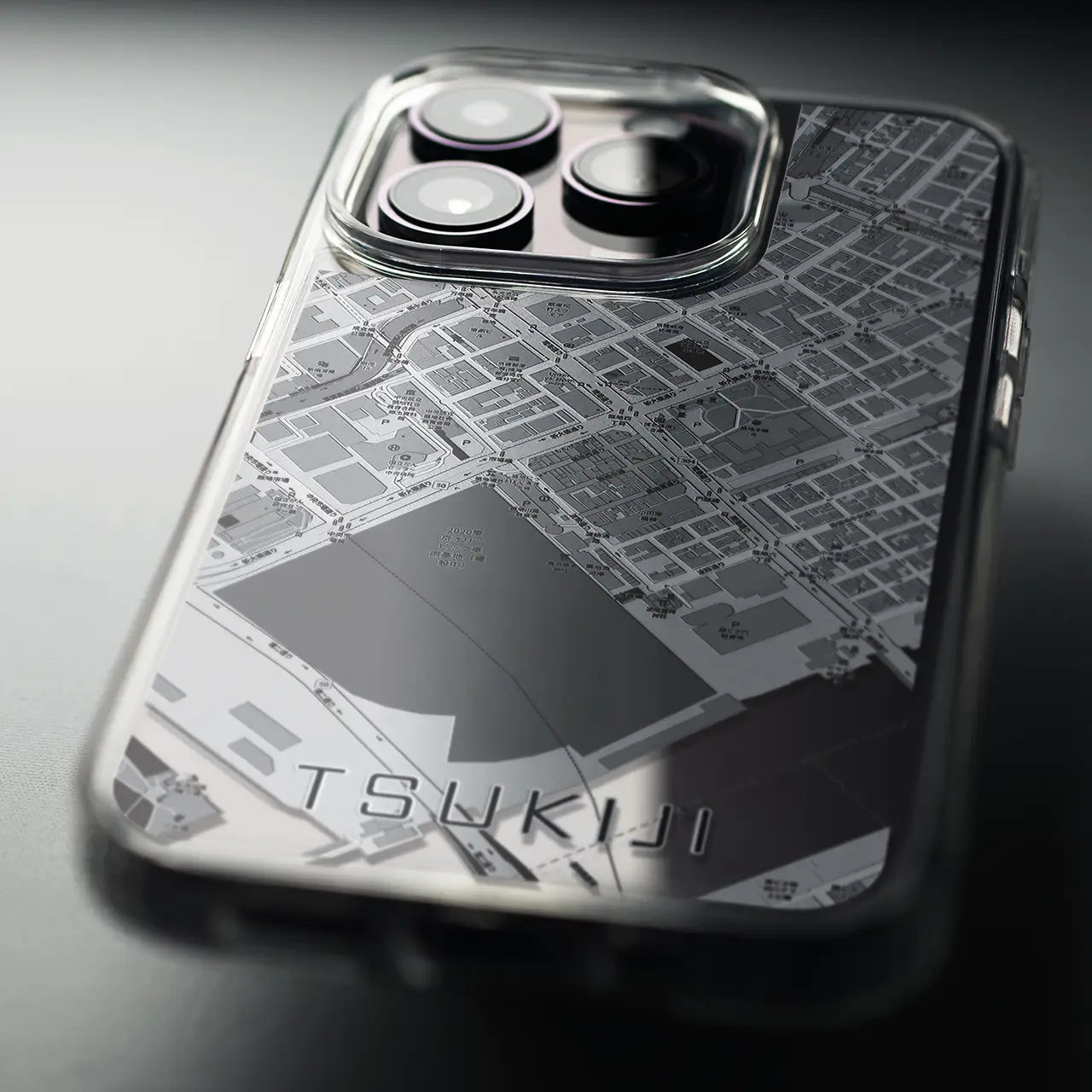 【築地(東京都)】地図柄iPhoneケース(MagSafeタイプ)モノトーン・iPhone 16 Pro 用