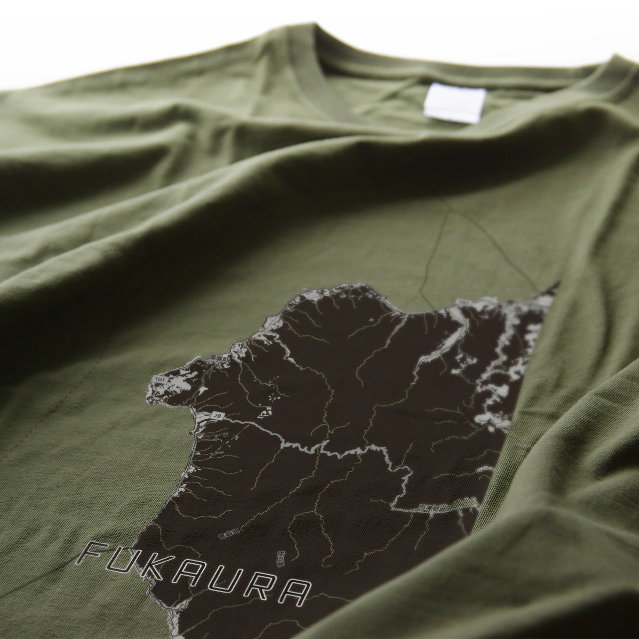 着心地のよいオーバーサイズTシャツにあなたの街「深浦」を大胆にプリントしました。
