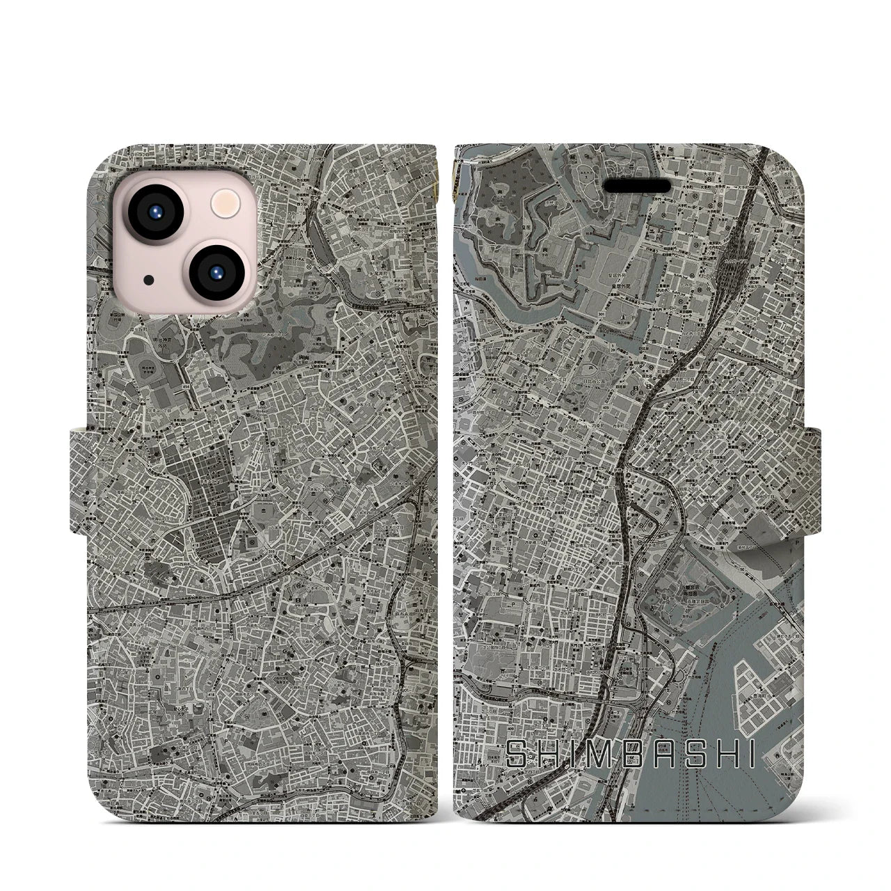 【新橋(東京都)】地図柄iPhoneケース(手帳タイプ)モノトーン・iPhone 13 mini 用