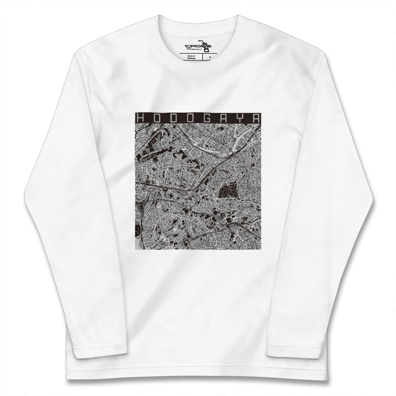 幅広いシーズンにフィットする長袖Tシャツにあなたの街「保土ケ谷」のモノトーンマップをプリントしました。