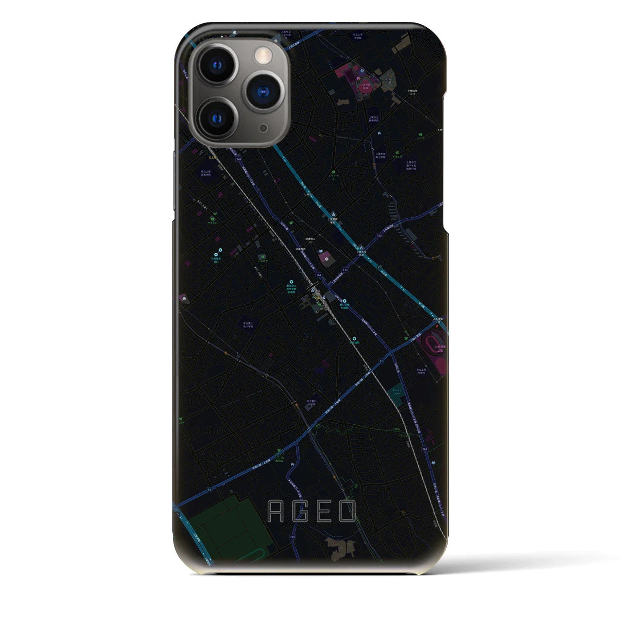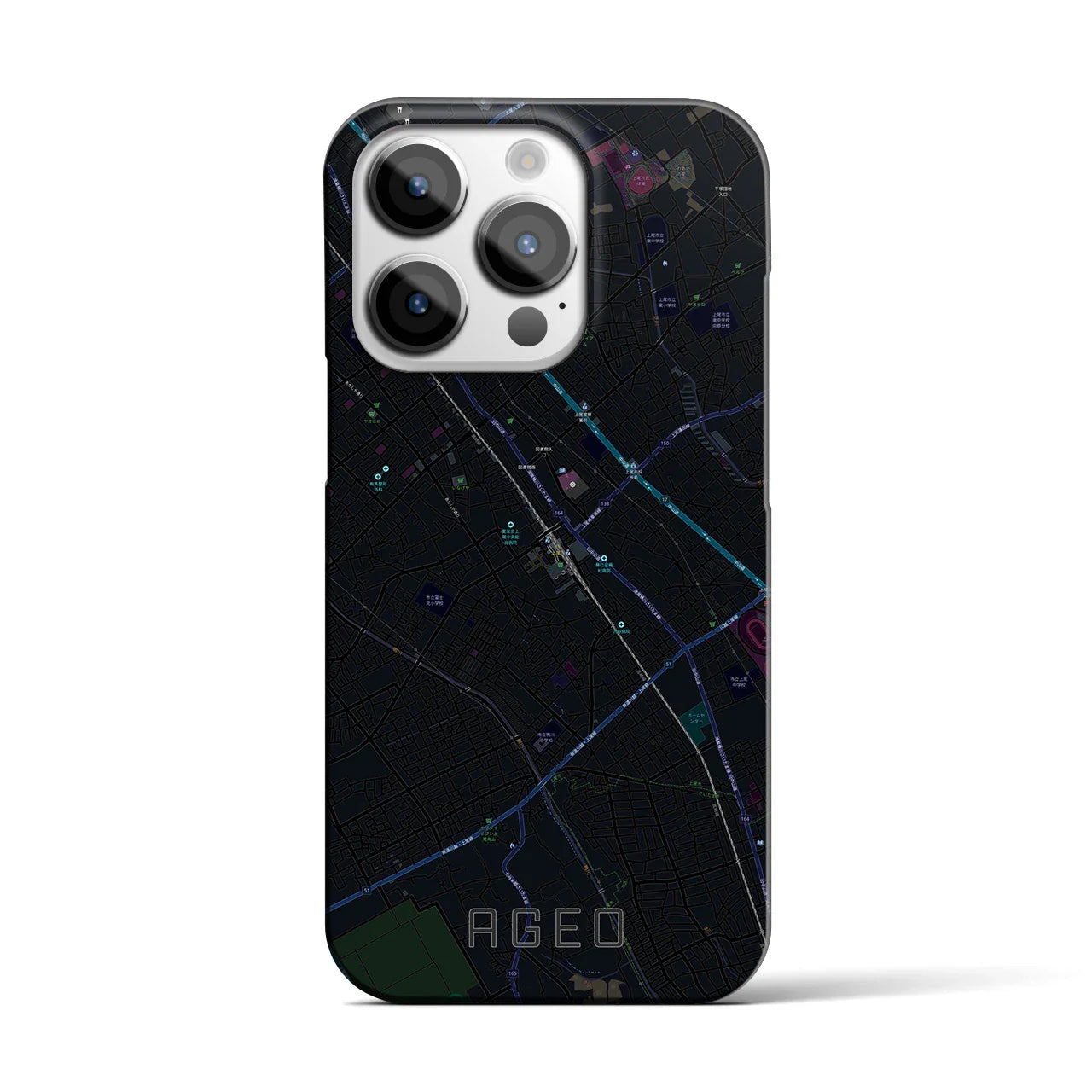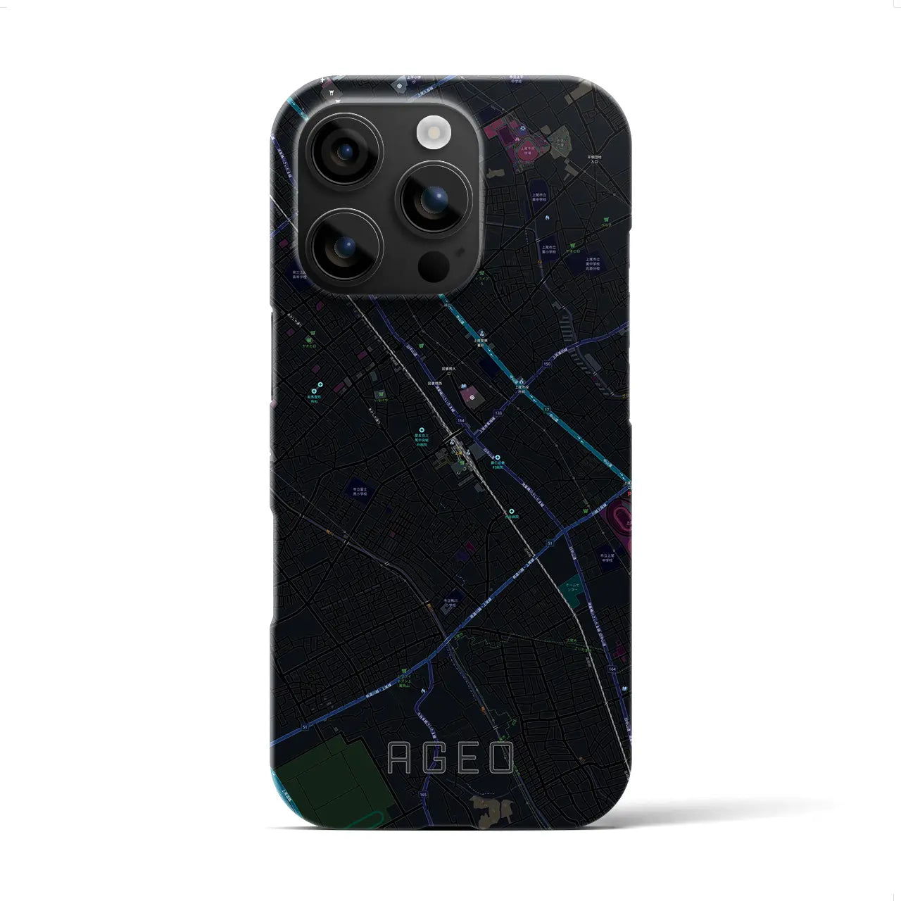 【上尾(埼玉県)】地図柄iPhoneケース(バックカバータイプ)ブラック・iPhone 16 Pro Max 用