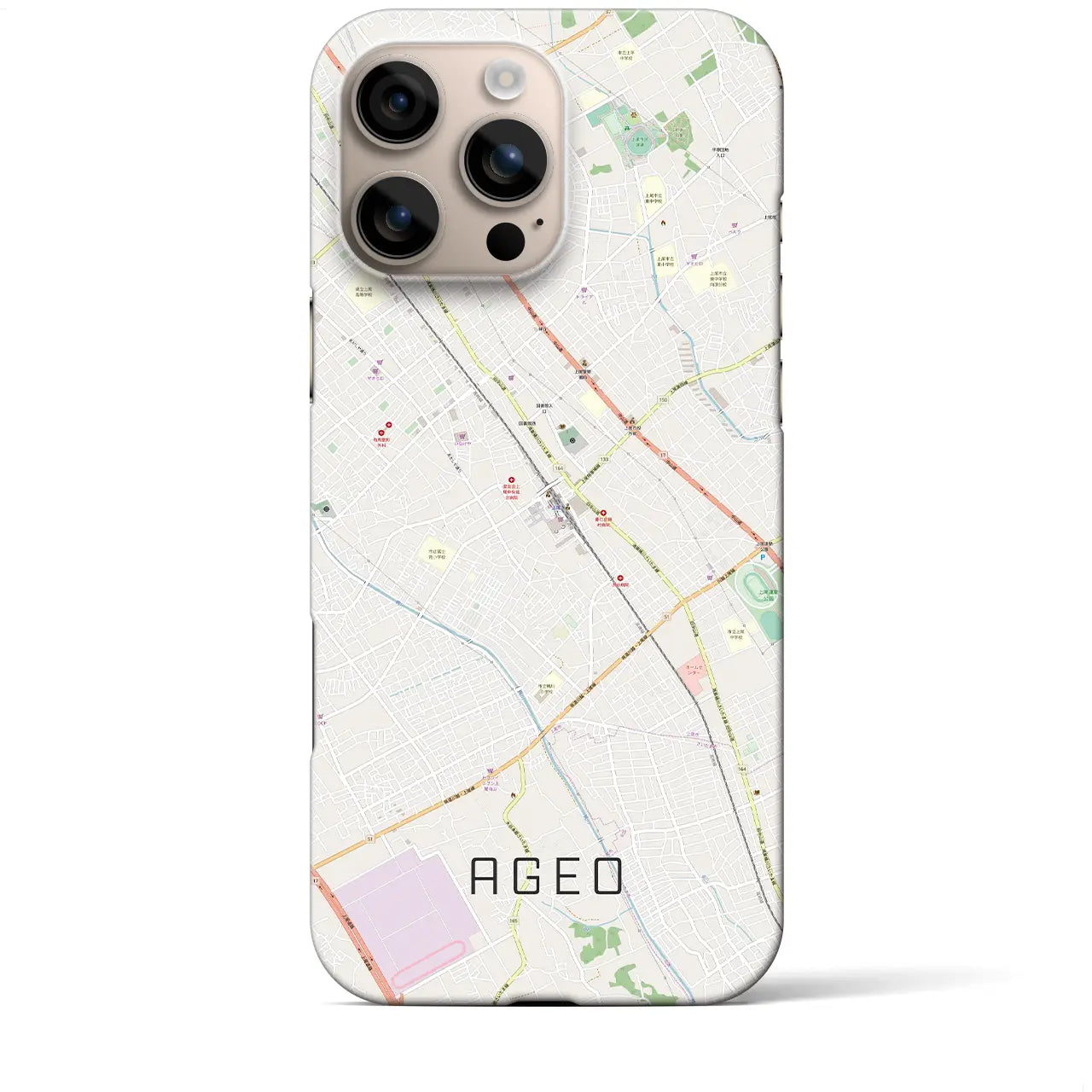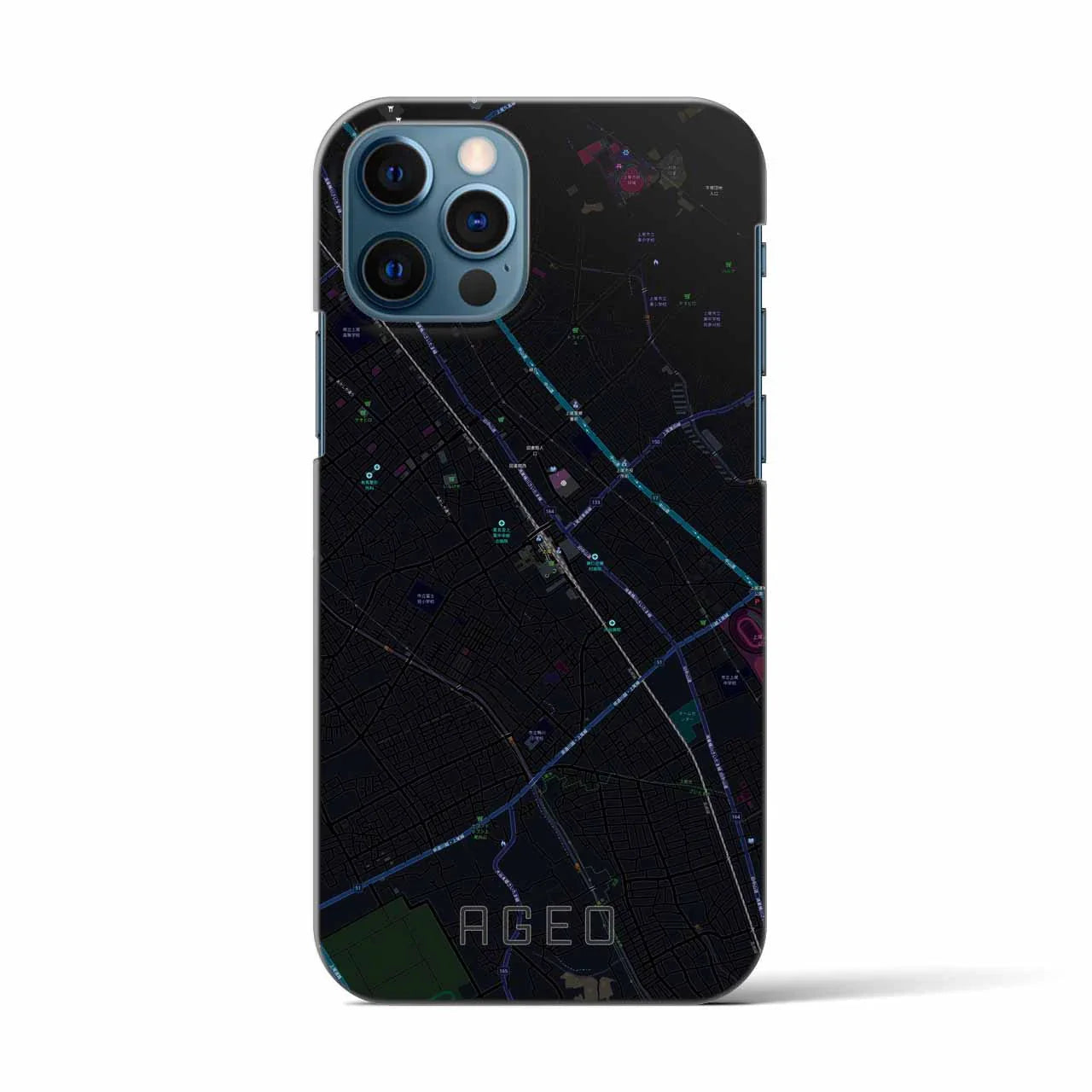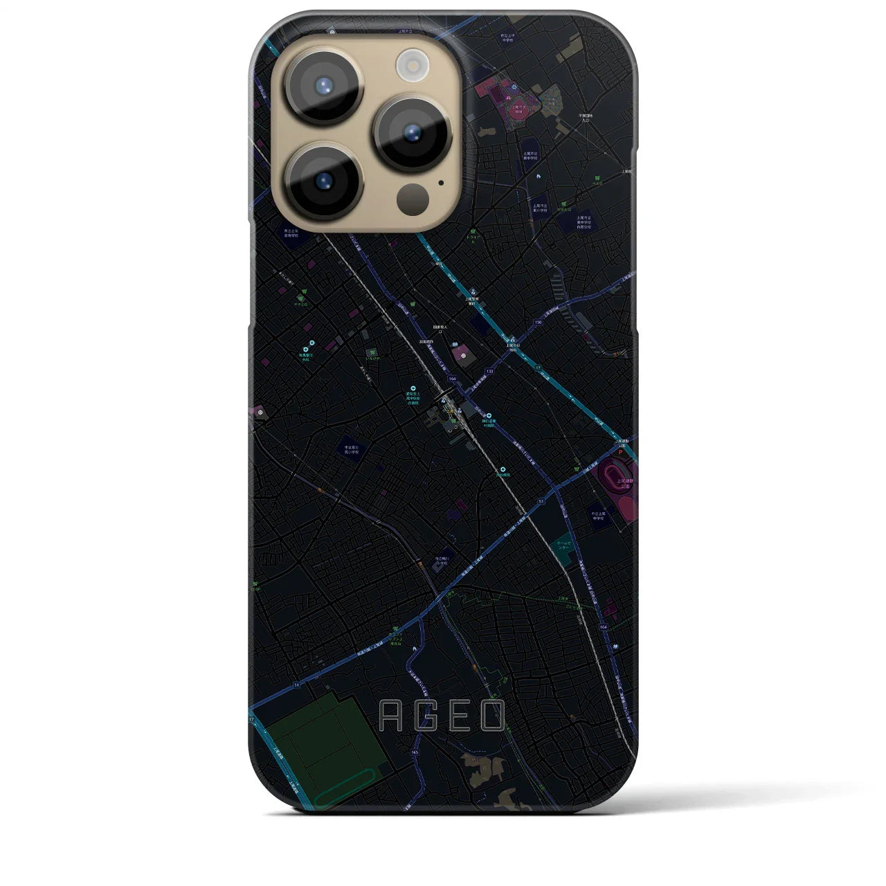 【上尾(埼玉県)】地図柄iPhoneケース(バックカバータイプ)ブラック・iPhone 16 Pro Max 用