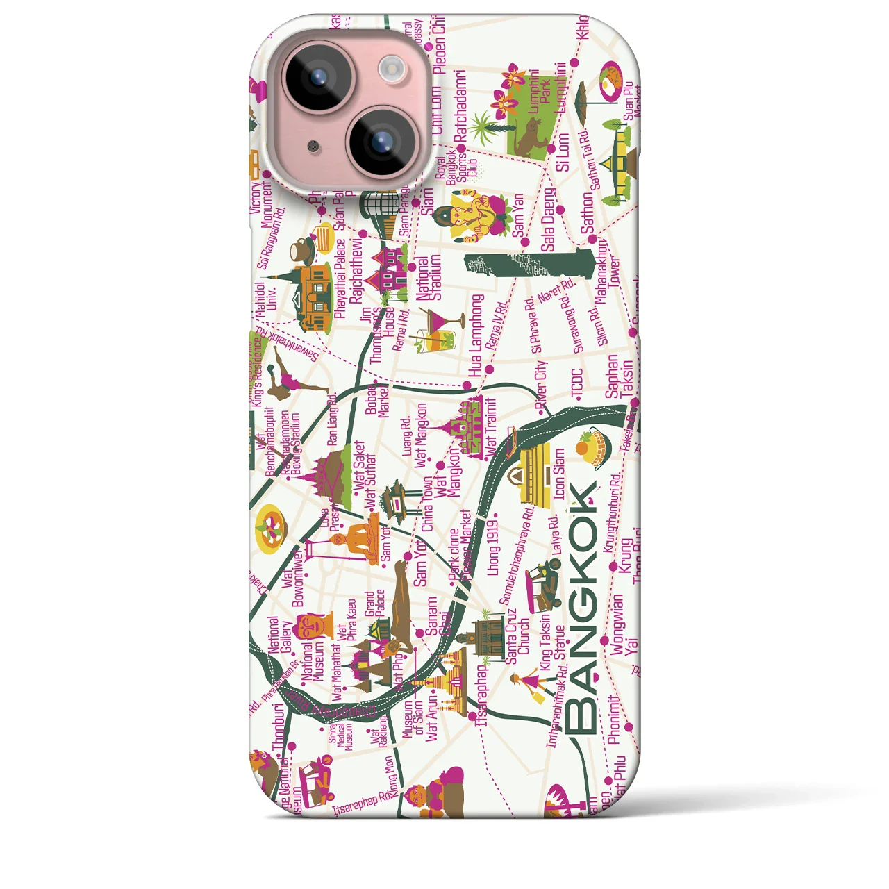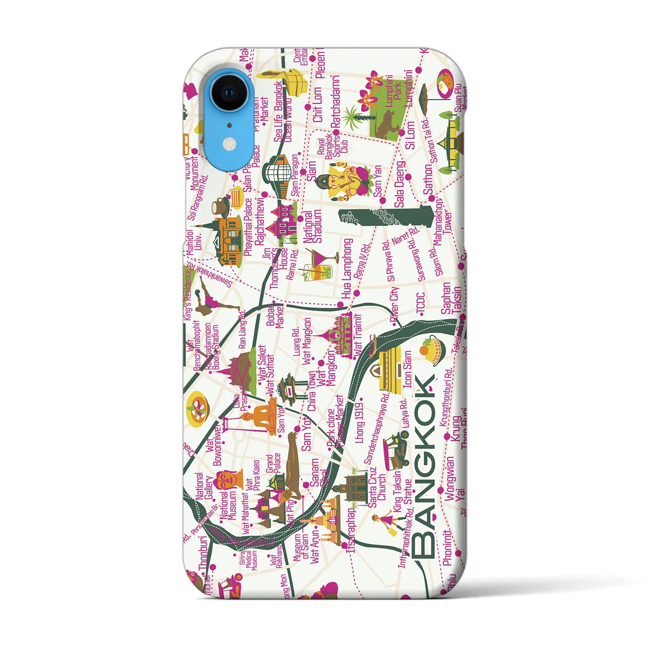 思い出の街、今を暮らす街、あなたが愛する「バンコク」を楽しいイラストで表現したバックカバータイプのiPhoneケースです。道一本からオリジナルで描き起こした地図上には様々なランドマークが散りばめられて、居ながらにして街歩きの気分が楽しめます。