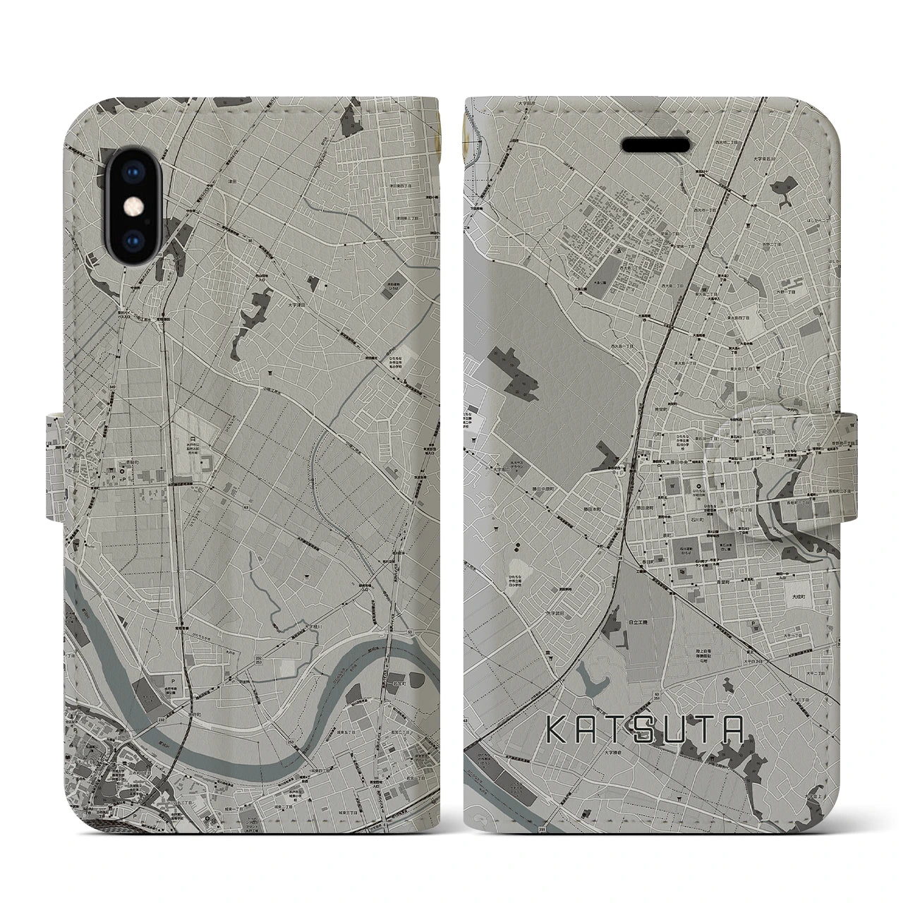 【勝田(茨城県)】地図柄iPhoneケース(手帳タイプ)モノトーン・iPhone XS Max 用
