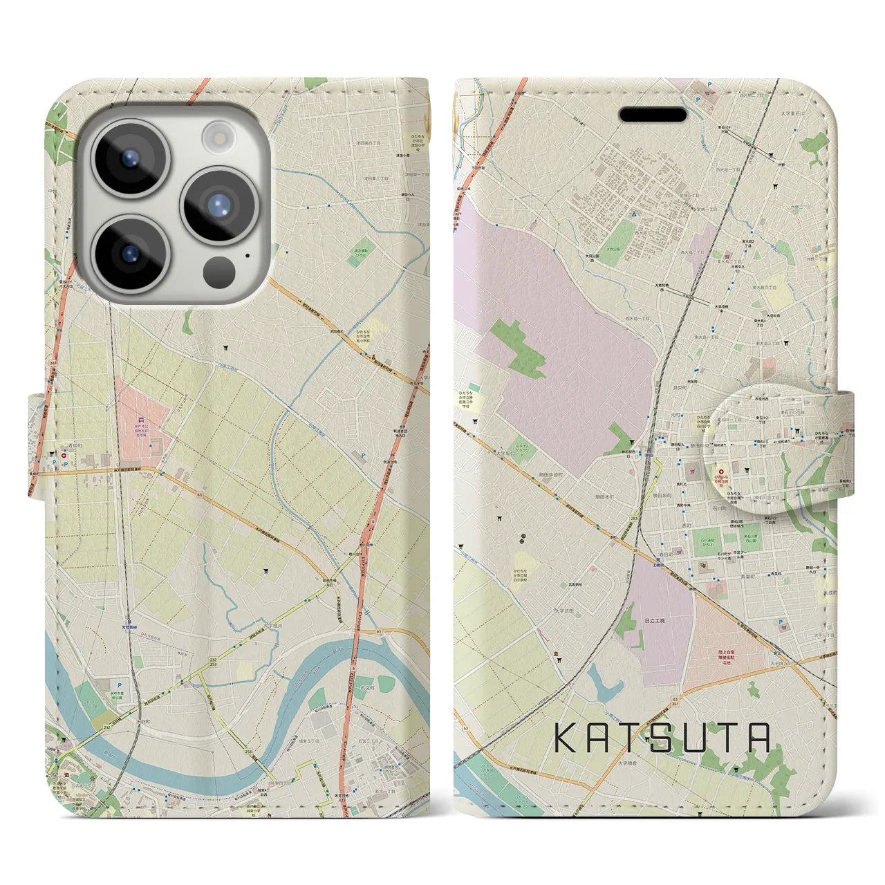 【勝田(茨城県)】地図柄iPhoneケース(手帳タイプ)ナチュラル・iPhone 15 Pro 用