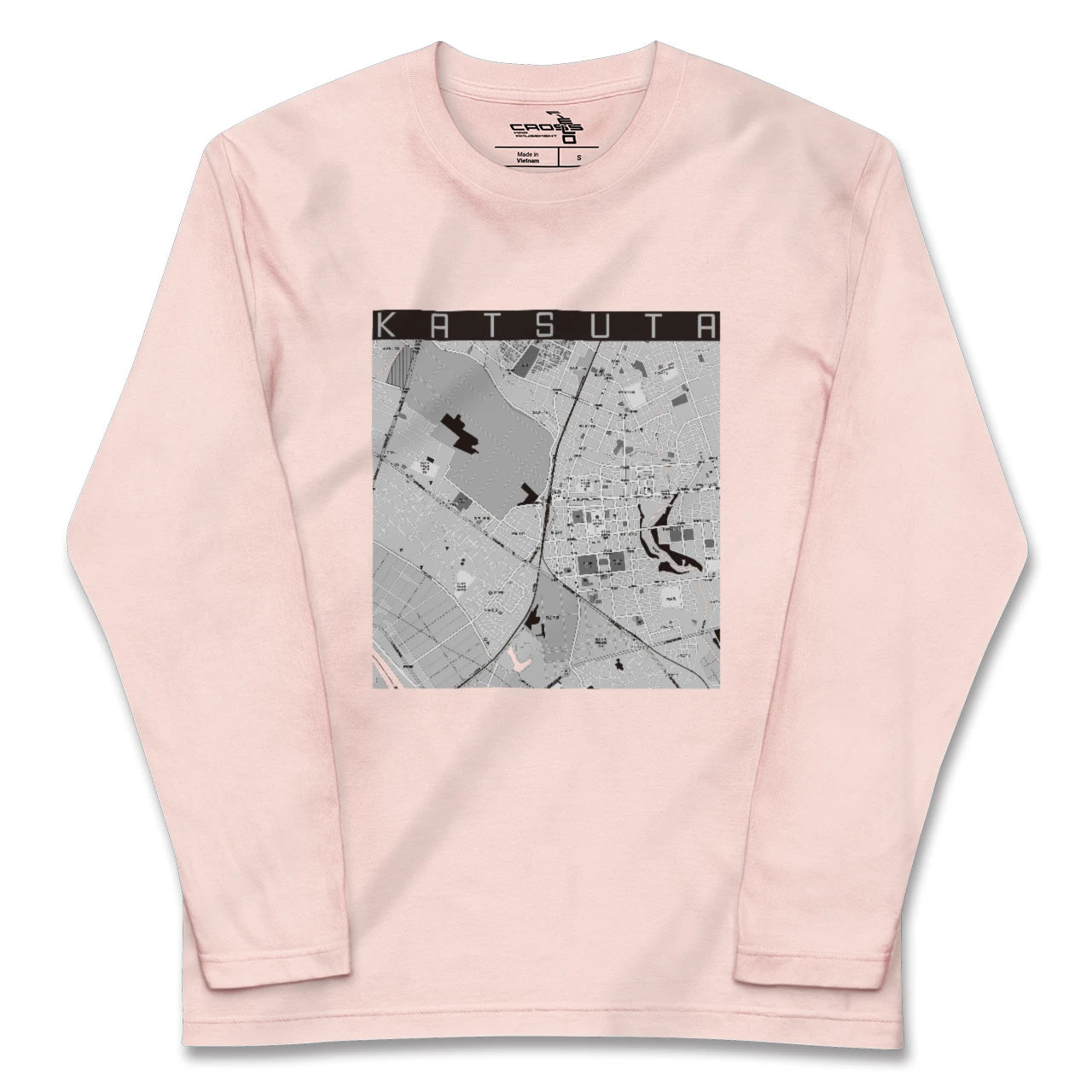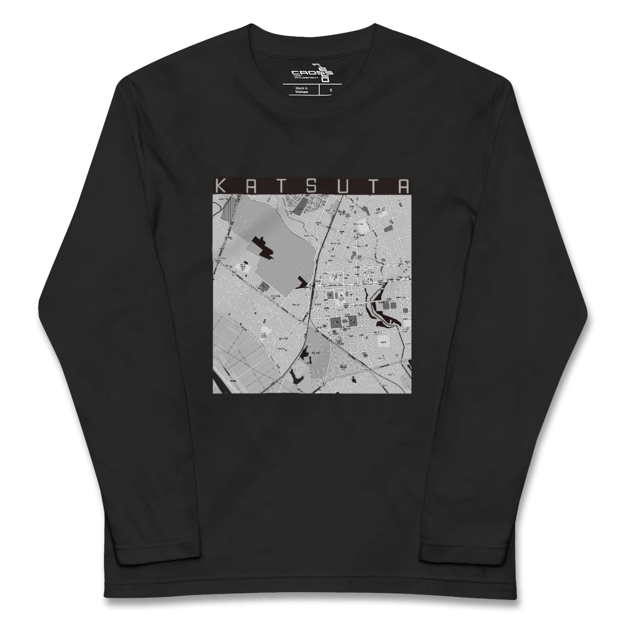 幅広いシーズンにフィットする長袖Tシャツにあなたの街「勝田」のモノトーンマップをプリントしました。
