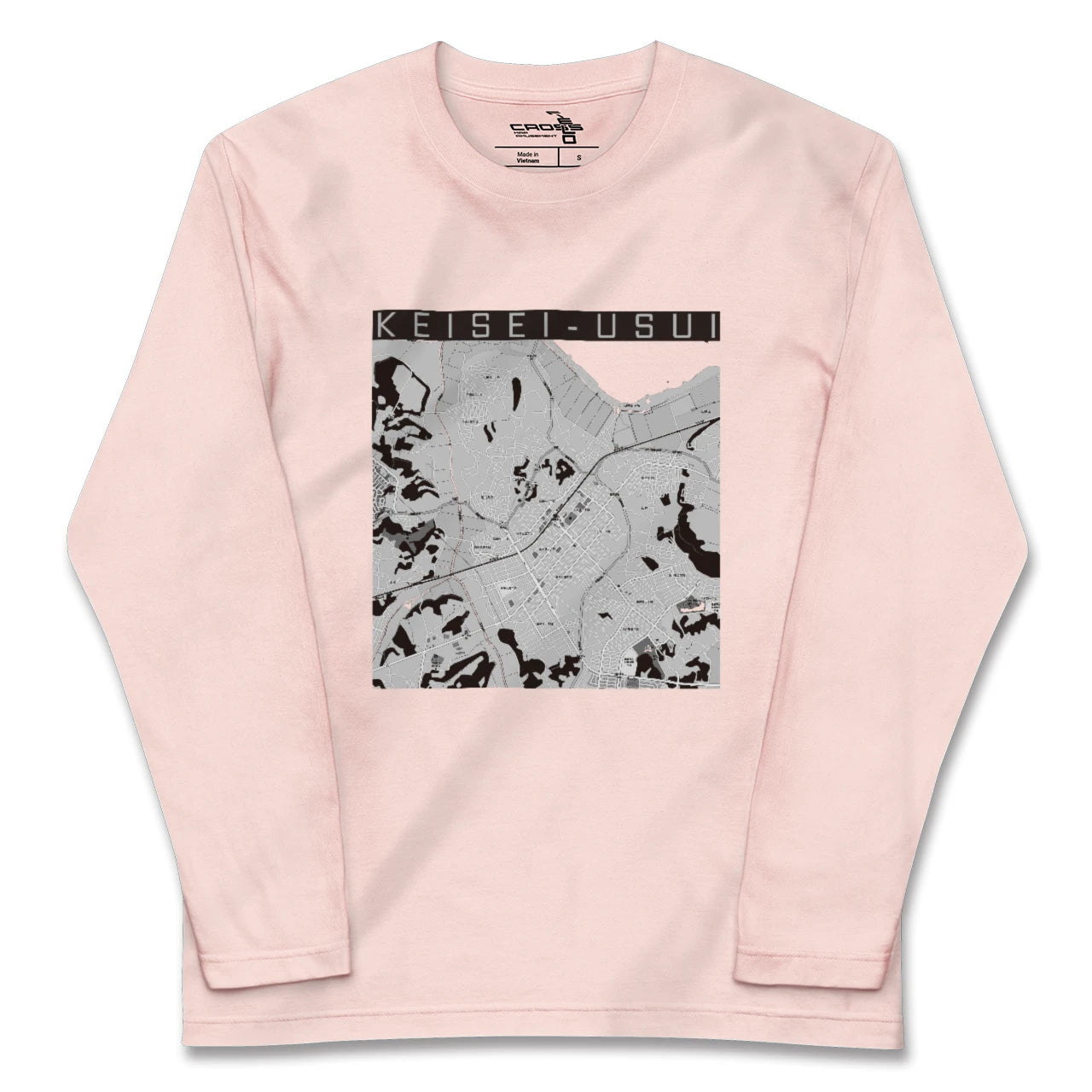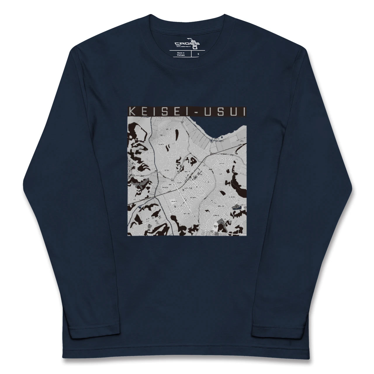 幅広いシーズンにフィットする長袖Tシャツにあなたの街「京成臼井」のモノトーンマップをプリントしました。