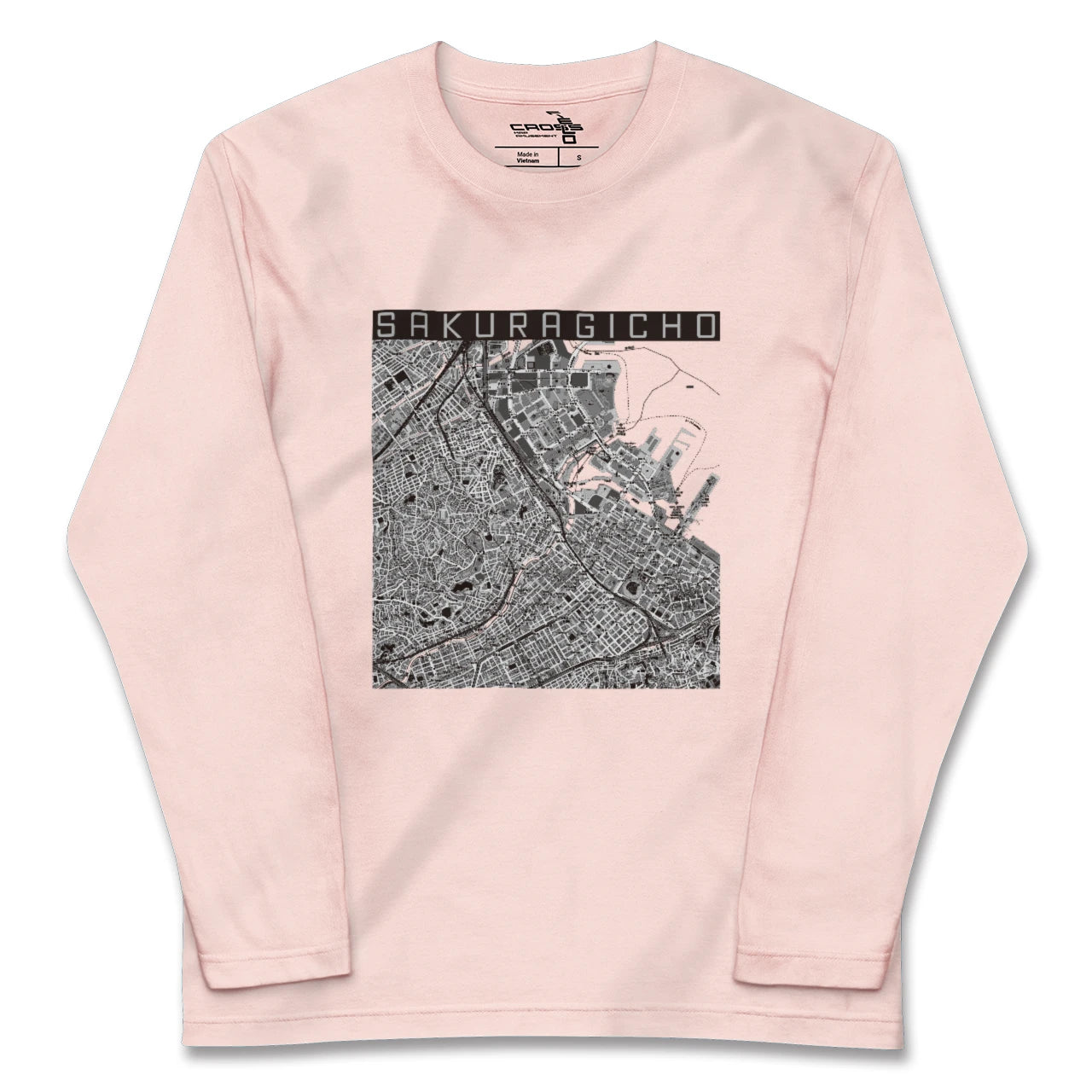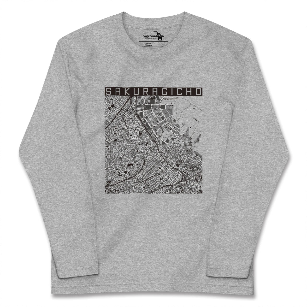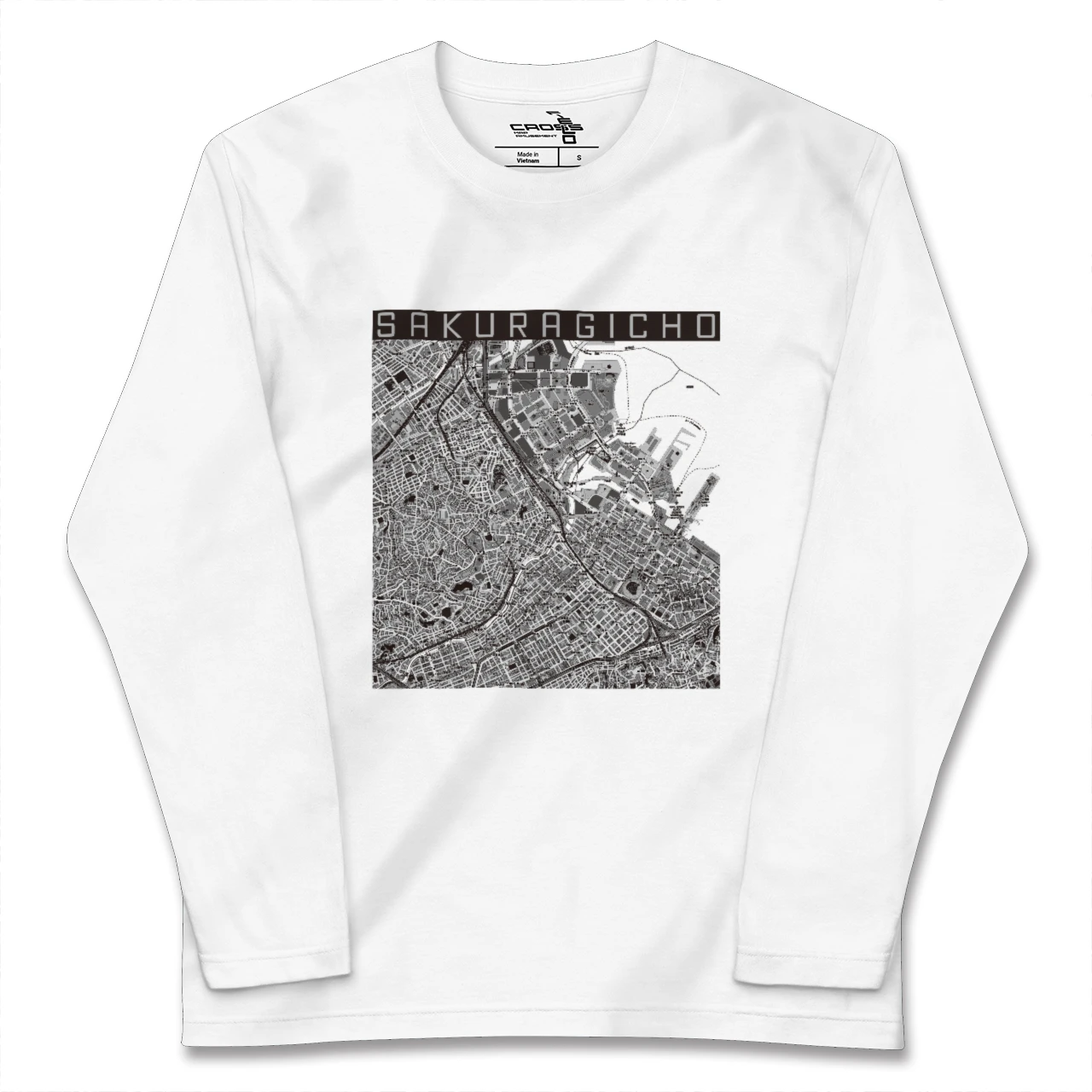 幅広いシーズンにフィットする長袖Tシャツにあなたの街「桜木町」のモノトーンマップをプリントしました。