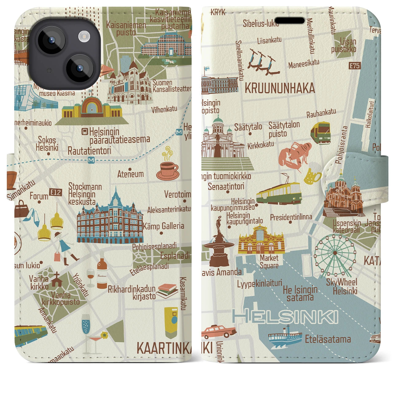 【ヘルシンキ(イラスト)】イラストマップiPhoneケース(手帳タイプ)ブライト・iPhone 15 Plus 用