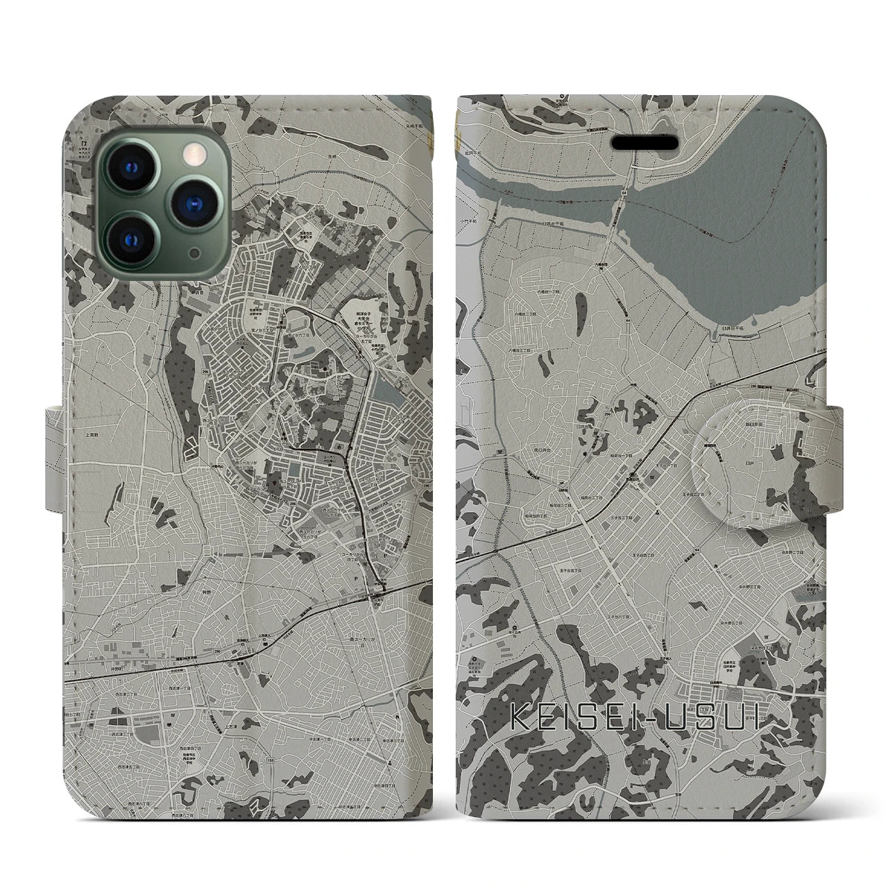 【京成臼井(千葉県)】地図柄iPhoneケース(手帳タイプ)モノトーン・iPhone 11 Pro 用