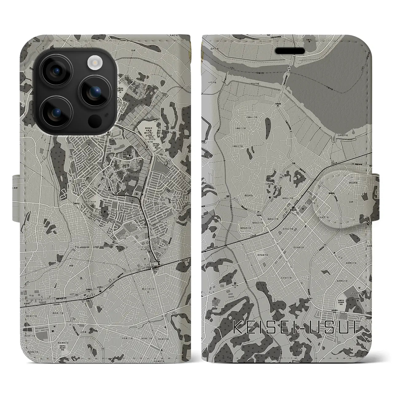 【京成臼井(千葉県)】地図柄iPhoneケース(手帳タイプ)モノトーン・iPhone 15 Pro 用