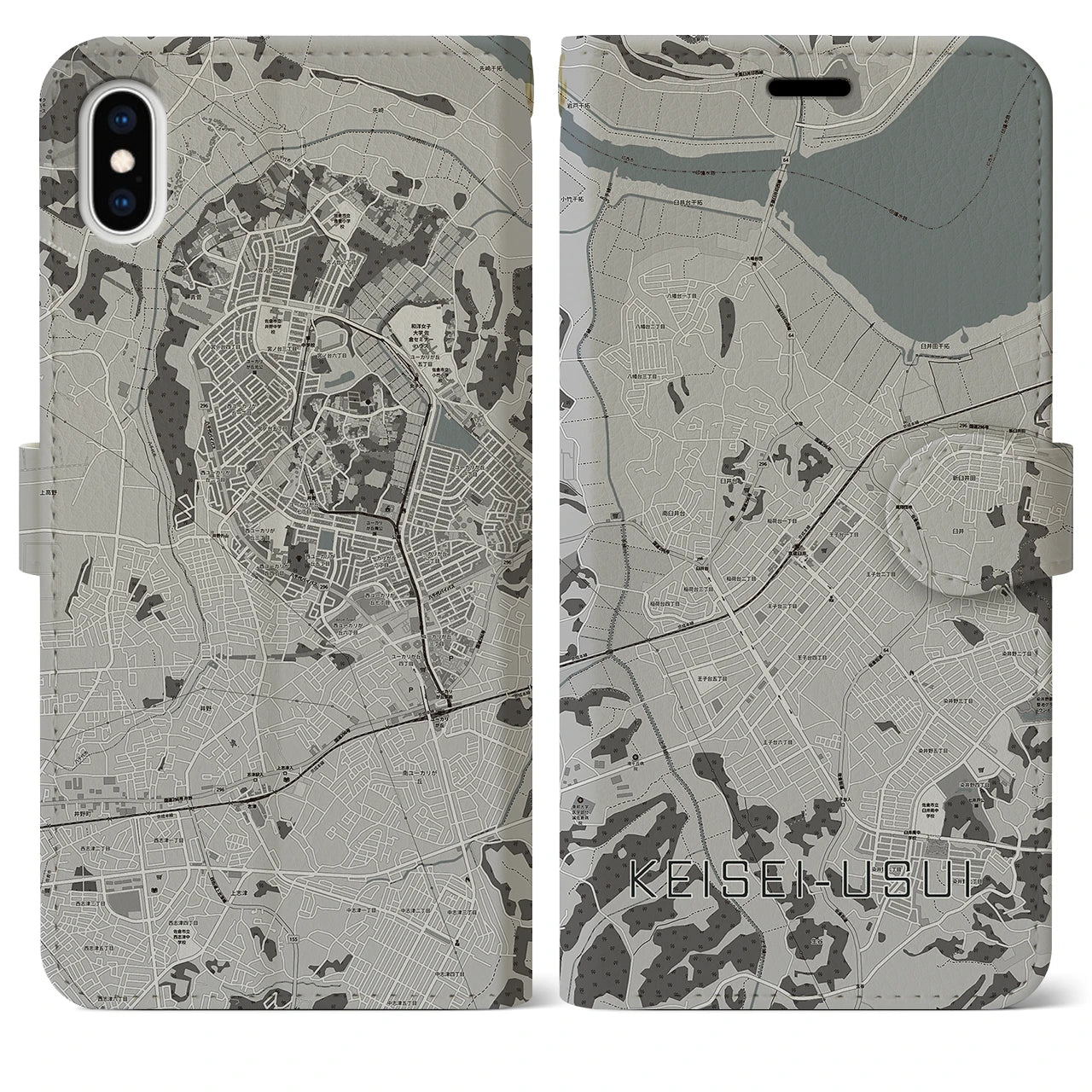 【京成臼井(千葉県)】地図柄iPhoneケース(手帳タイプ)モノトーン・iPhone XS Max 用
